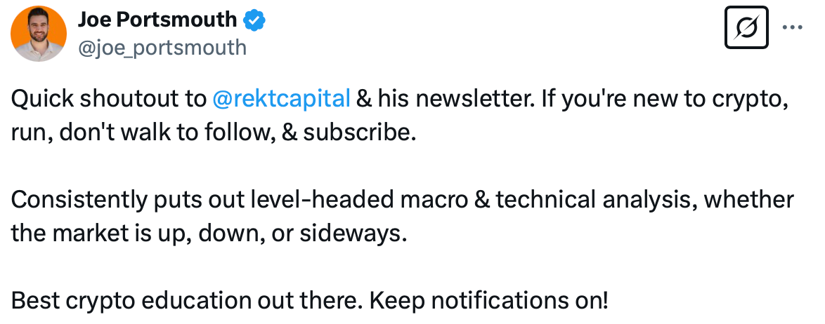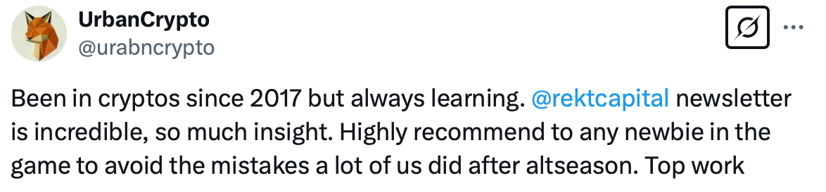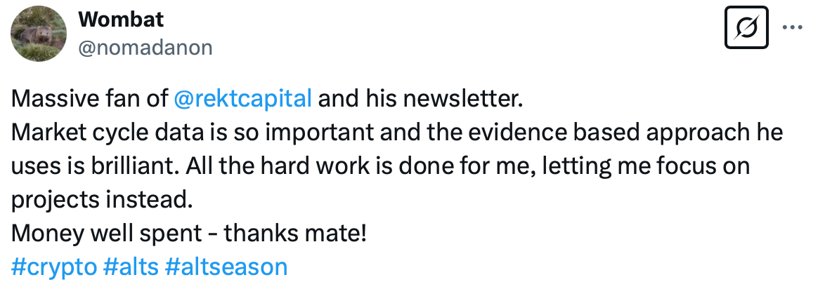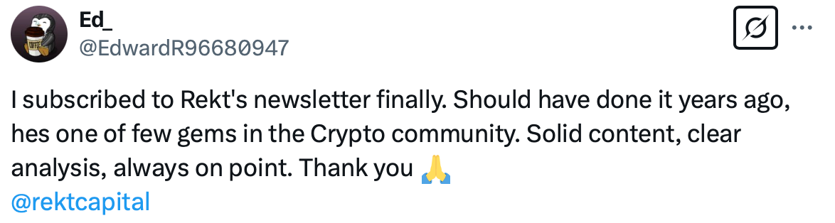 Today, the Rekt Capital Newsletter is a Top Crypto Newsletter globally which is focused on providing cutting-edge research and level-headed market insights on Bitcoin and Altcoins.