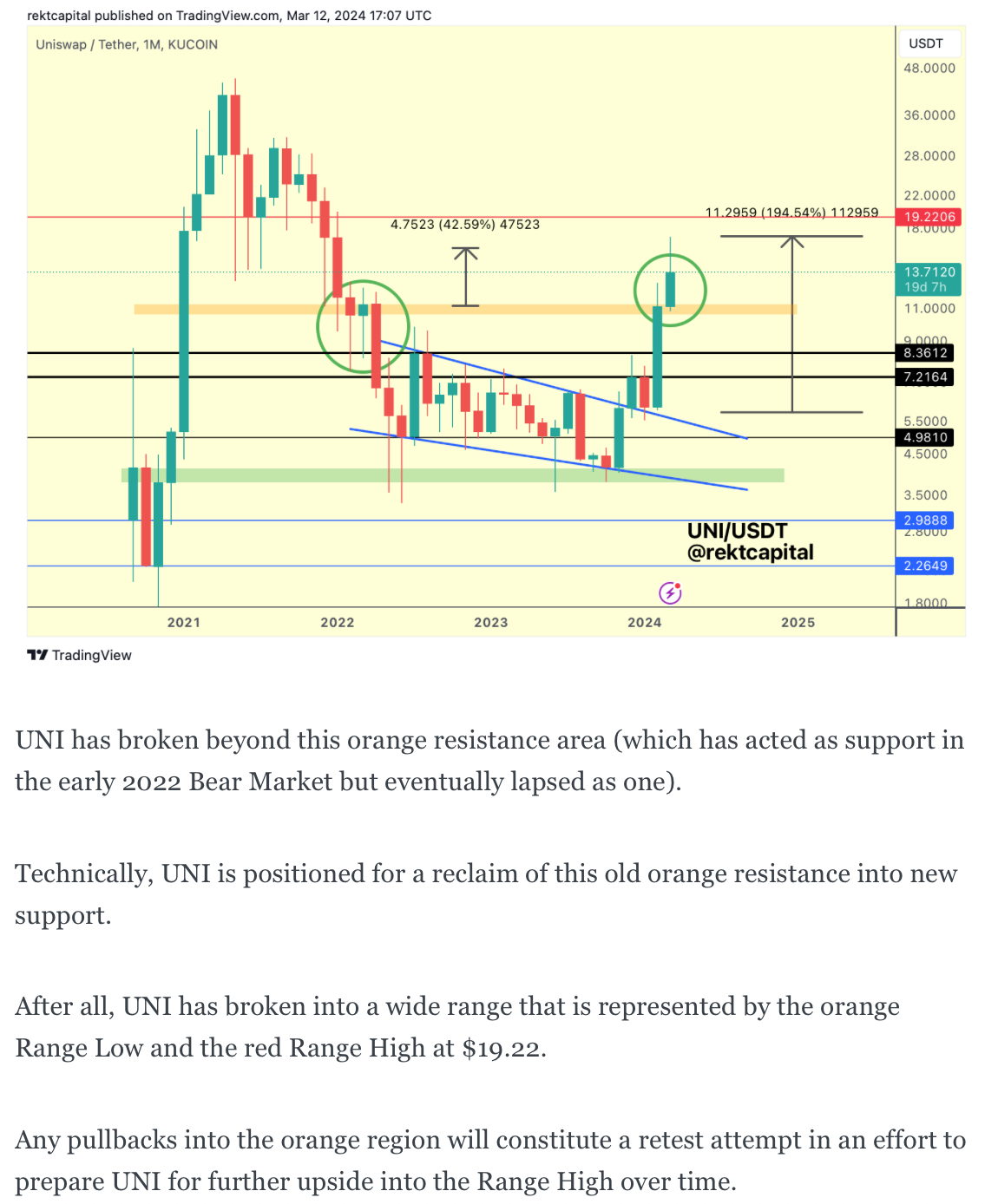 Last week, we spoke about how UNI was positioning itself for a retest of the orange region that it had broke in previous weeks: