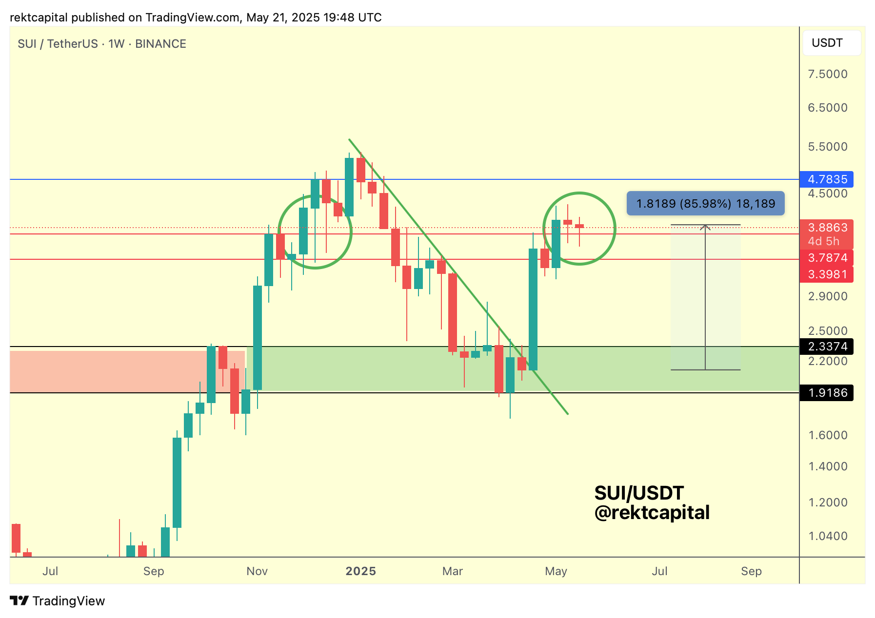 SUI is still in the process of retesting the top of this red-red historical Re-Accumulation Range.
