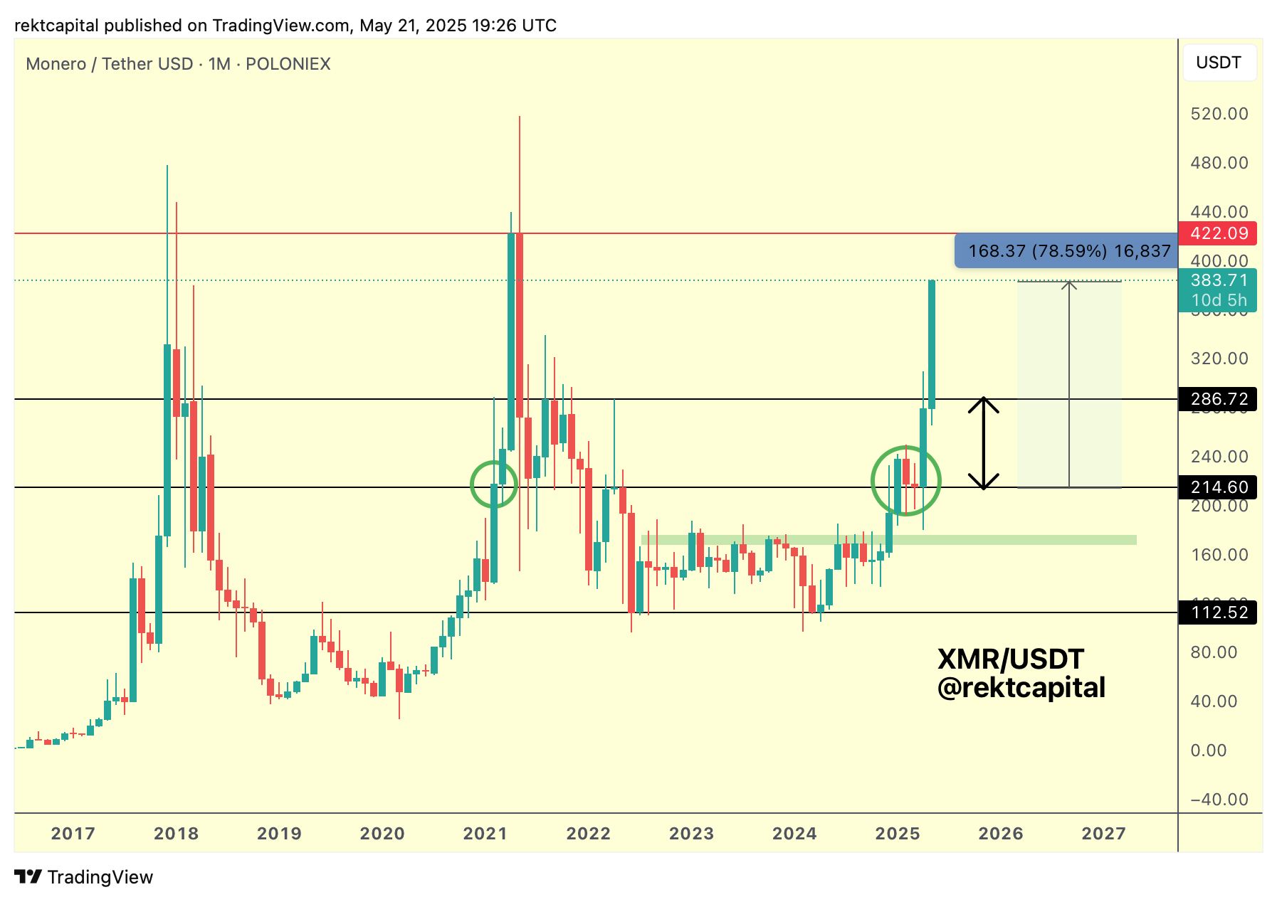 In mid-March, we spoke about XMR's retest attempt and its pursuit in trying to repeat late 2020, early 2021 history: