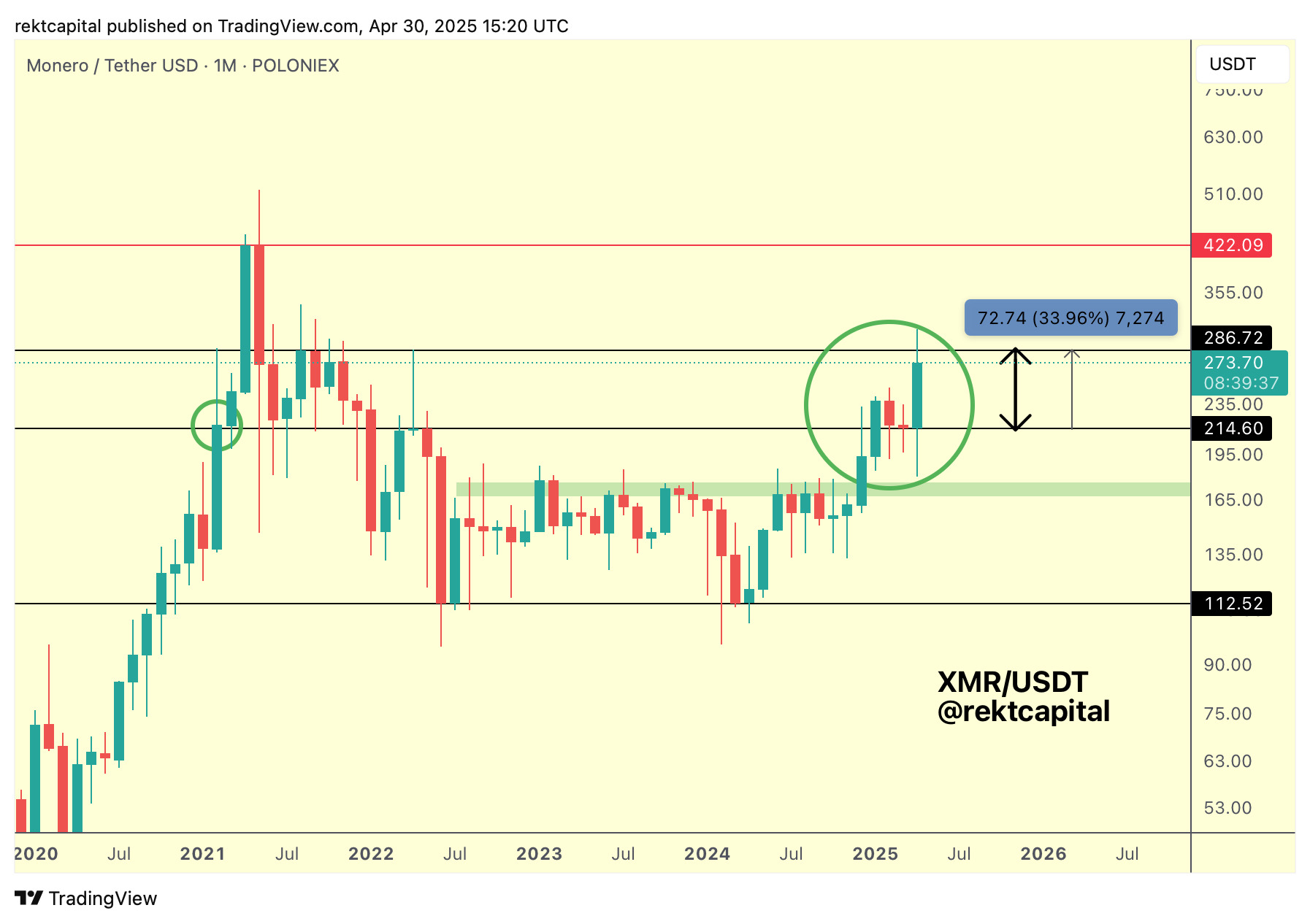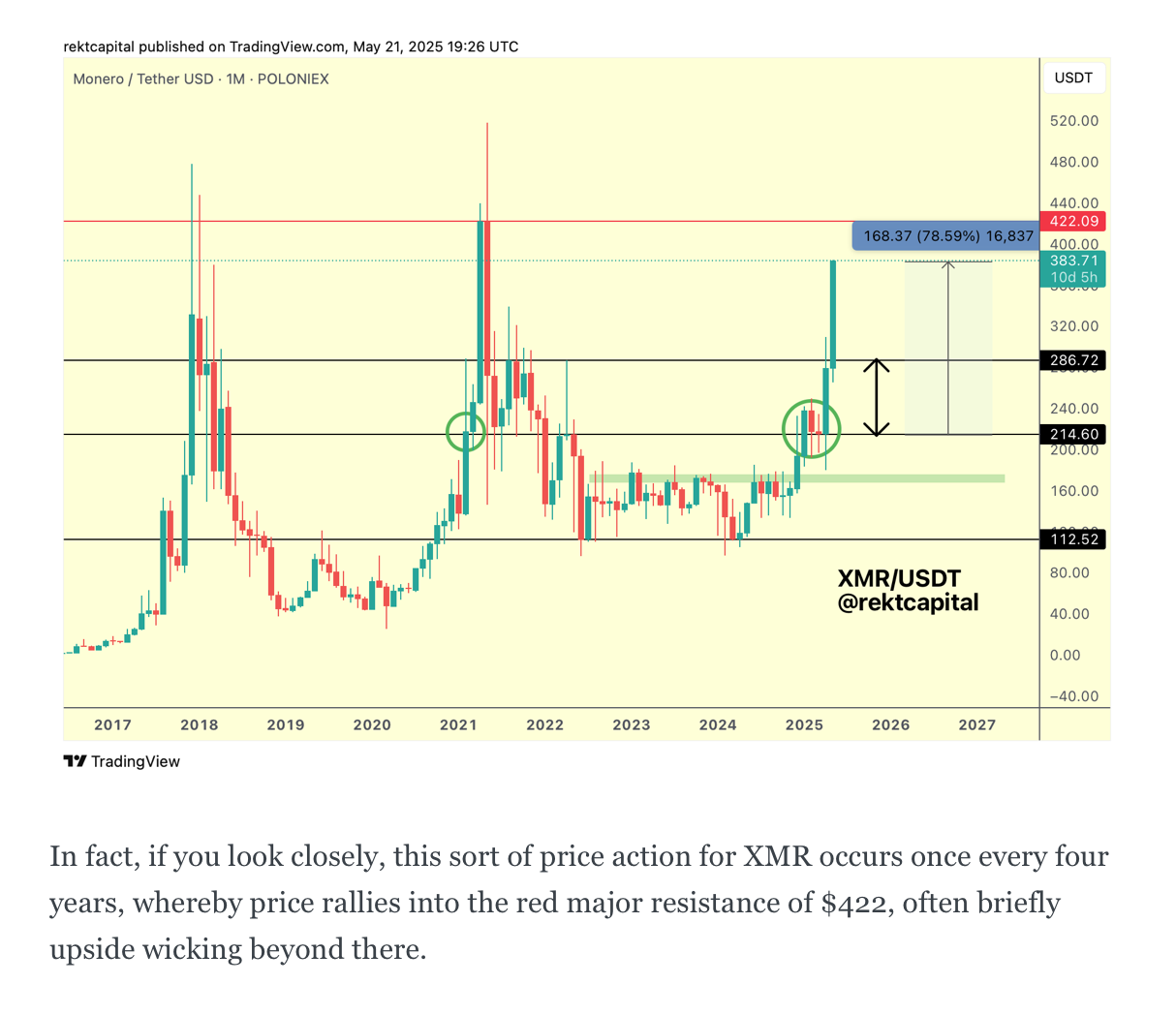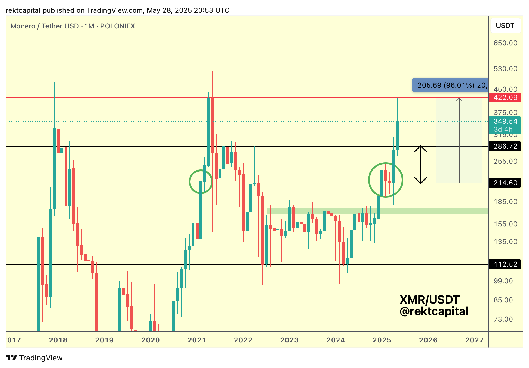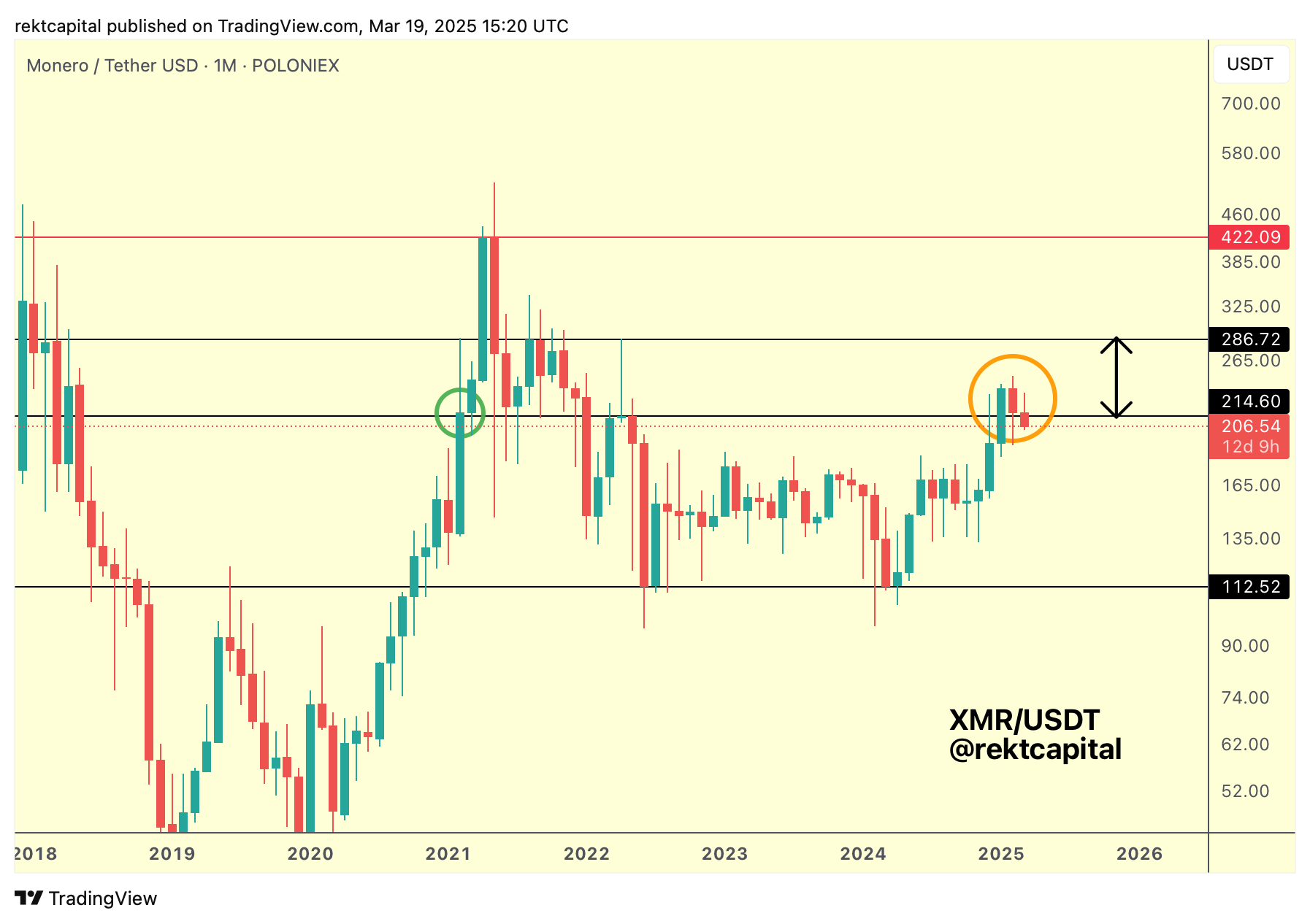 In mid-March, we spoke about XMR's retest attempt and its pursuit in trying to repeat late 2020, early 2021 history: