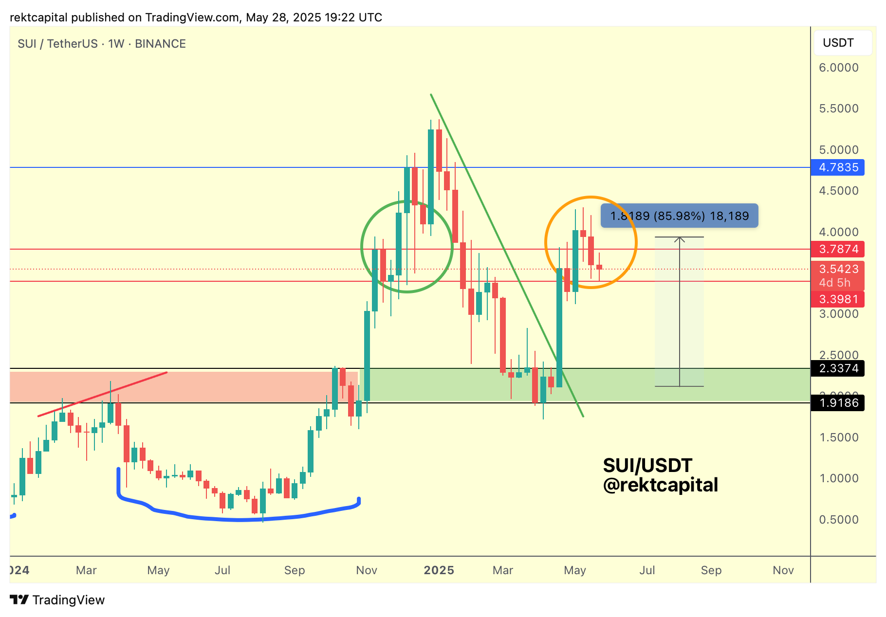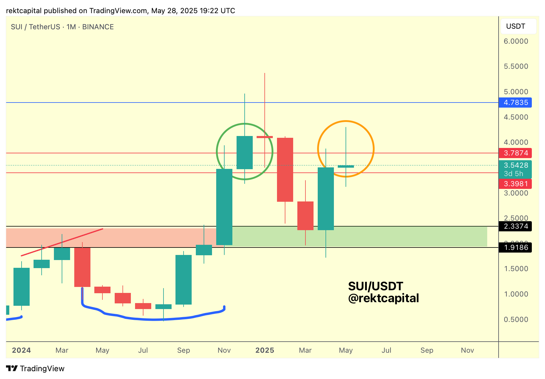 Back in late 2024, SUI Monthly Closed above the red $3.39 level and then retested it successfully as support in the following month.