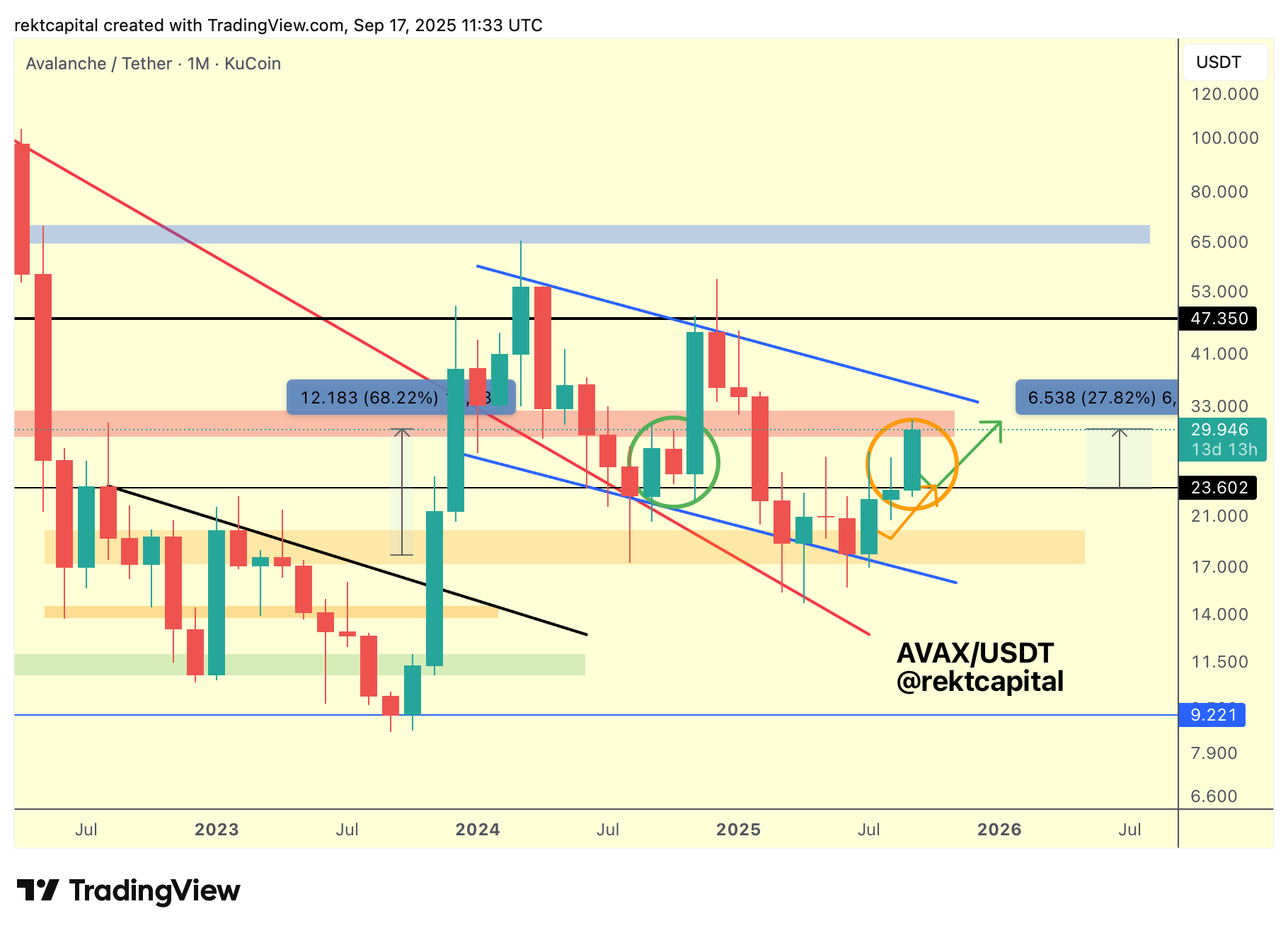 And finally, sustained support into weeks two and three. Only after those conditions are met can AVAX realistically fight for the crucial Monthly Close above the wedge top to confirm a breakout from it altogether to enter what would be Macro Uptrend Continuation.