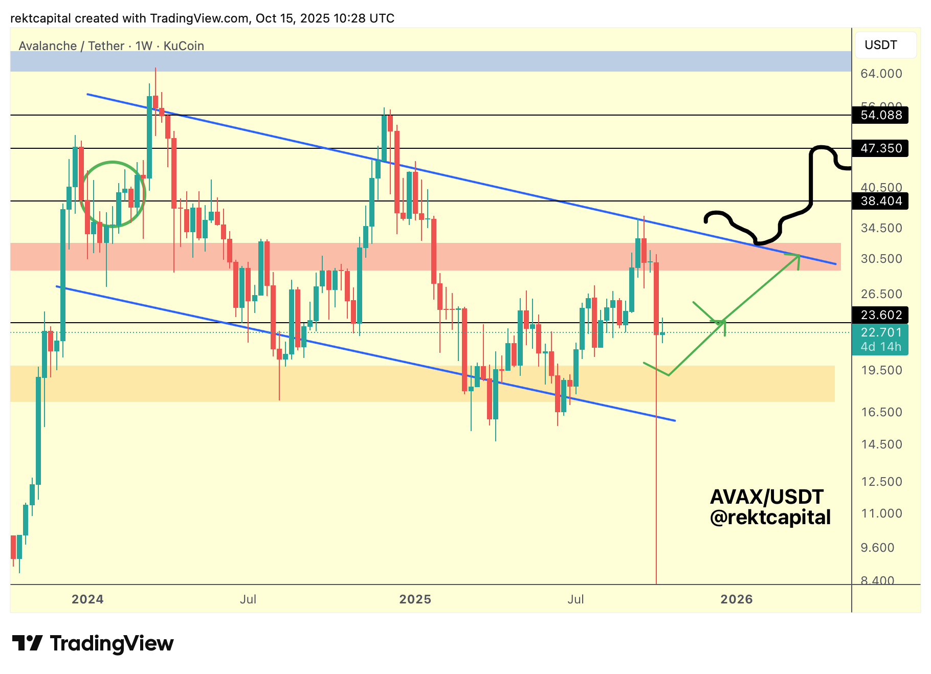 Historically, whenever Avalanche has confirmed this reclaim, it has progressed to test higher resistances and advanced towards the upper regions of the Macro Wedge.