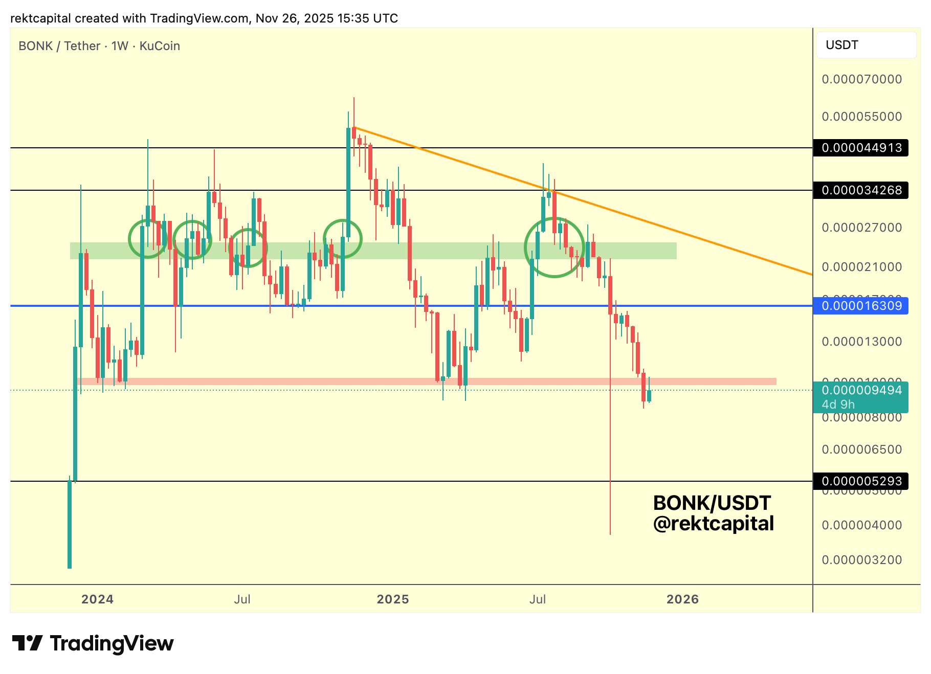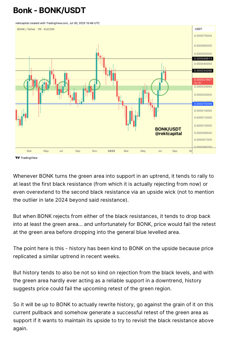 BONK has already Weekly Closed below this level and tagged the underside of it, producing a bearish retest.