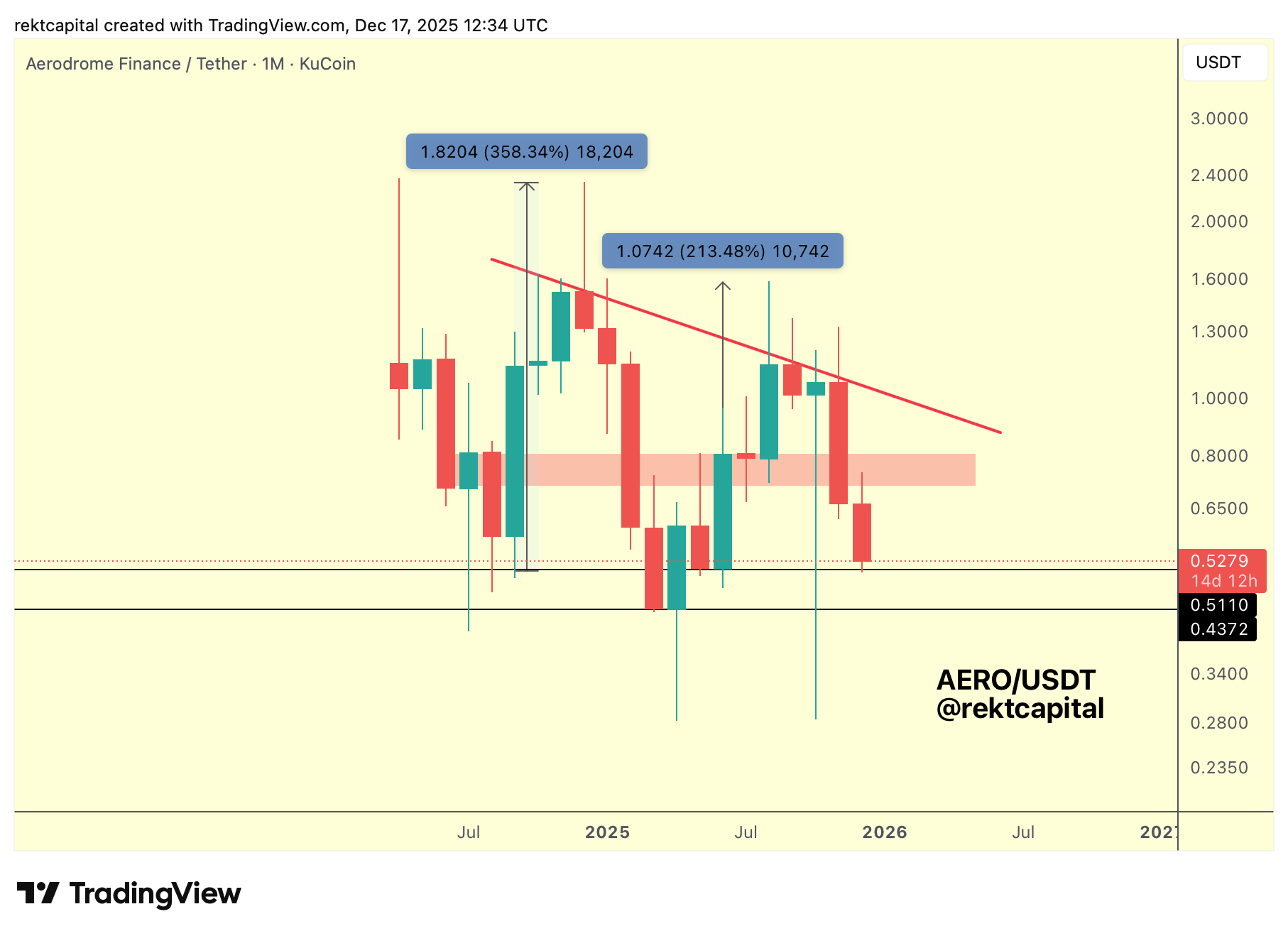 Even then, any rebound would likely be weaker than those seen previously, and whether AERO can muster that reaction at all will be decisive for price behaviour into January and early Q1.