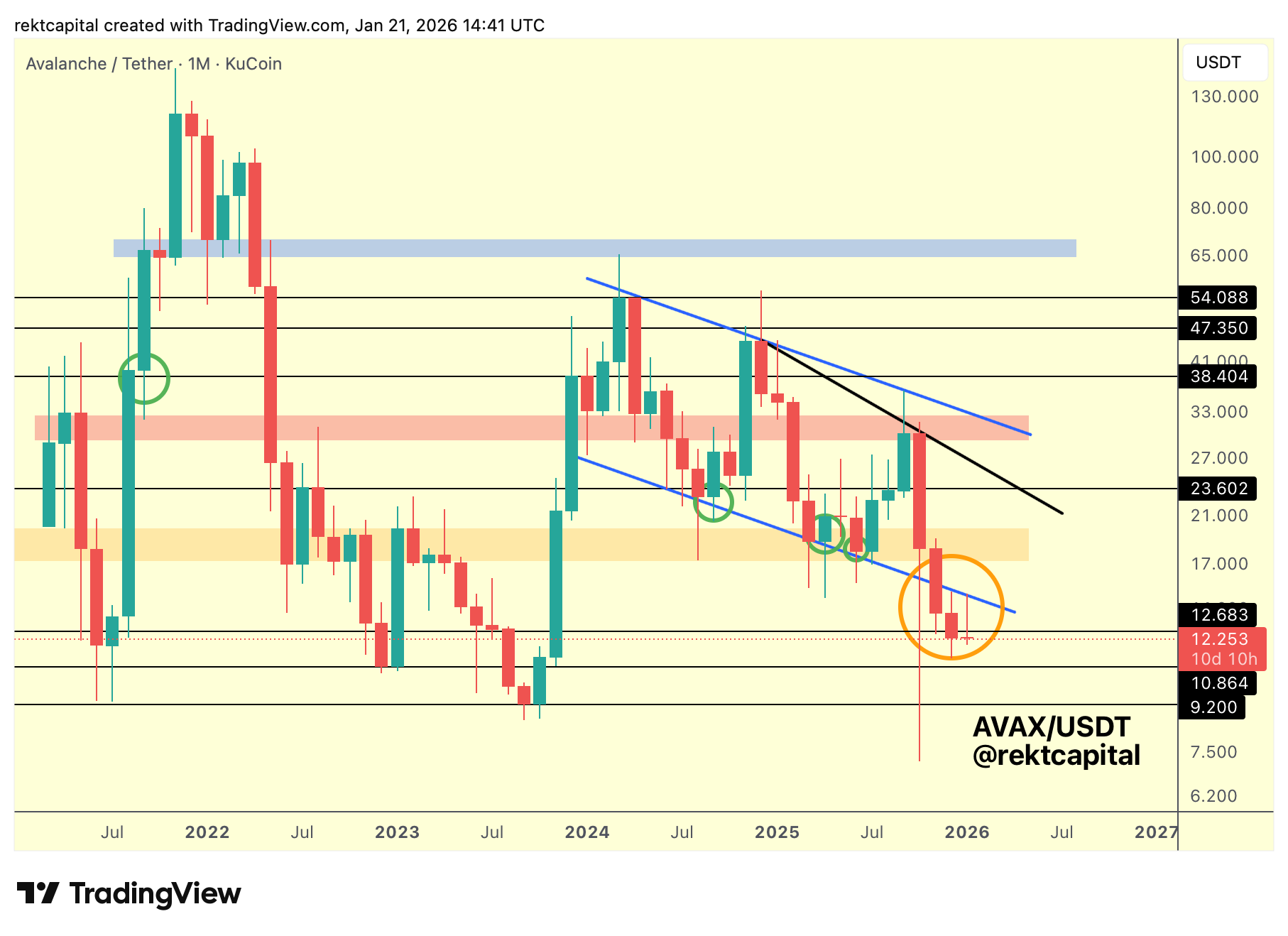 On the Monthly timeframe, AVAX has lost its macro wedging structure.