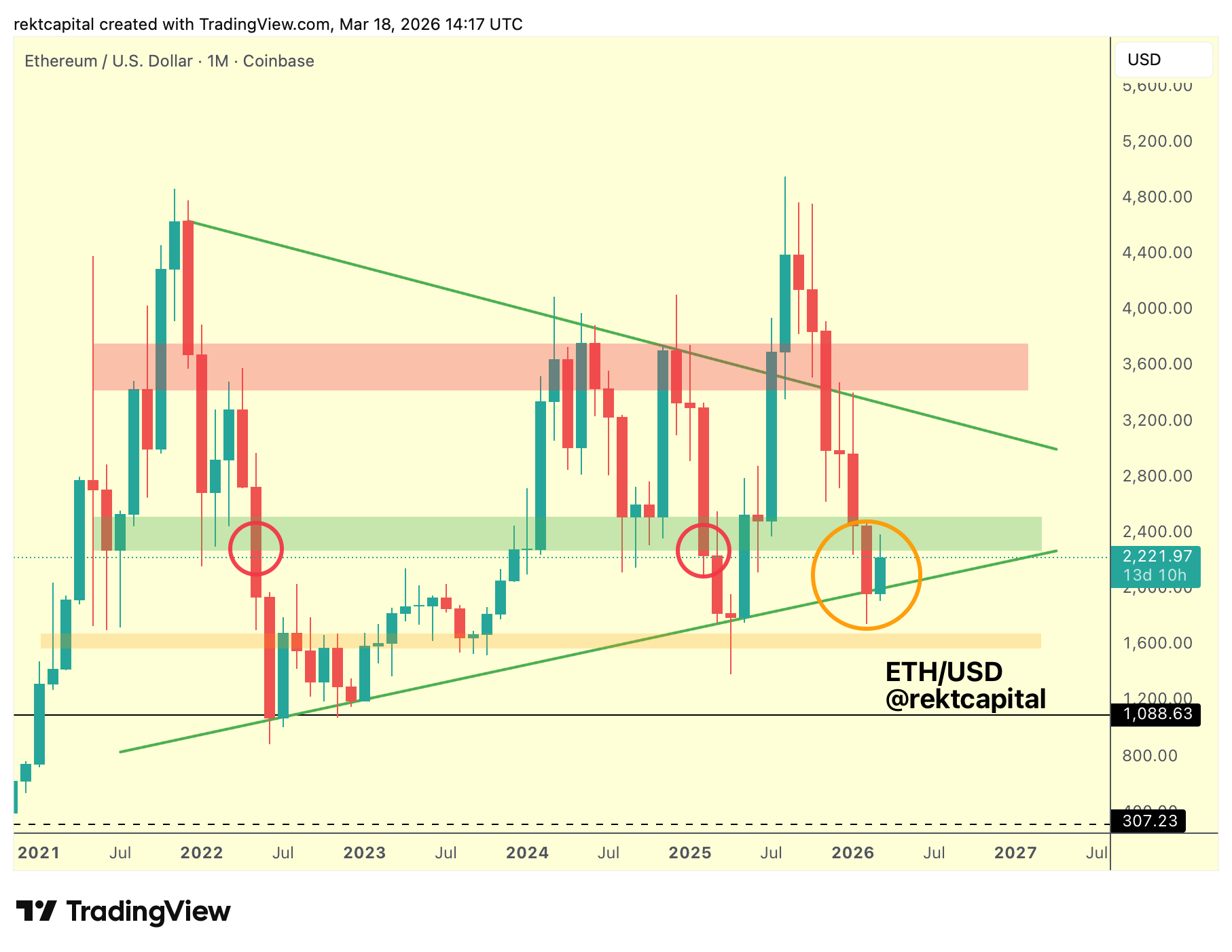 For Ethereum to shift this structure, price would need to Monthly Close above the green region and turn it back into new support.