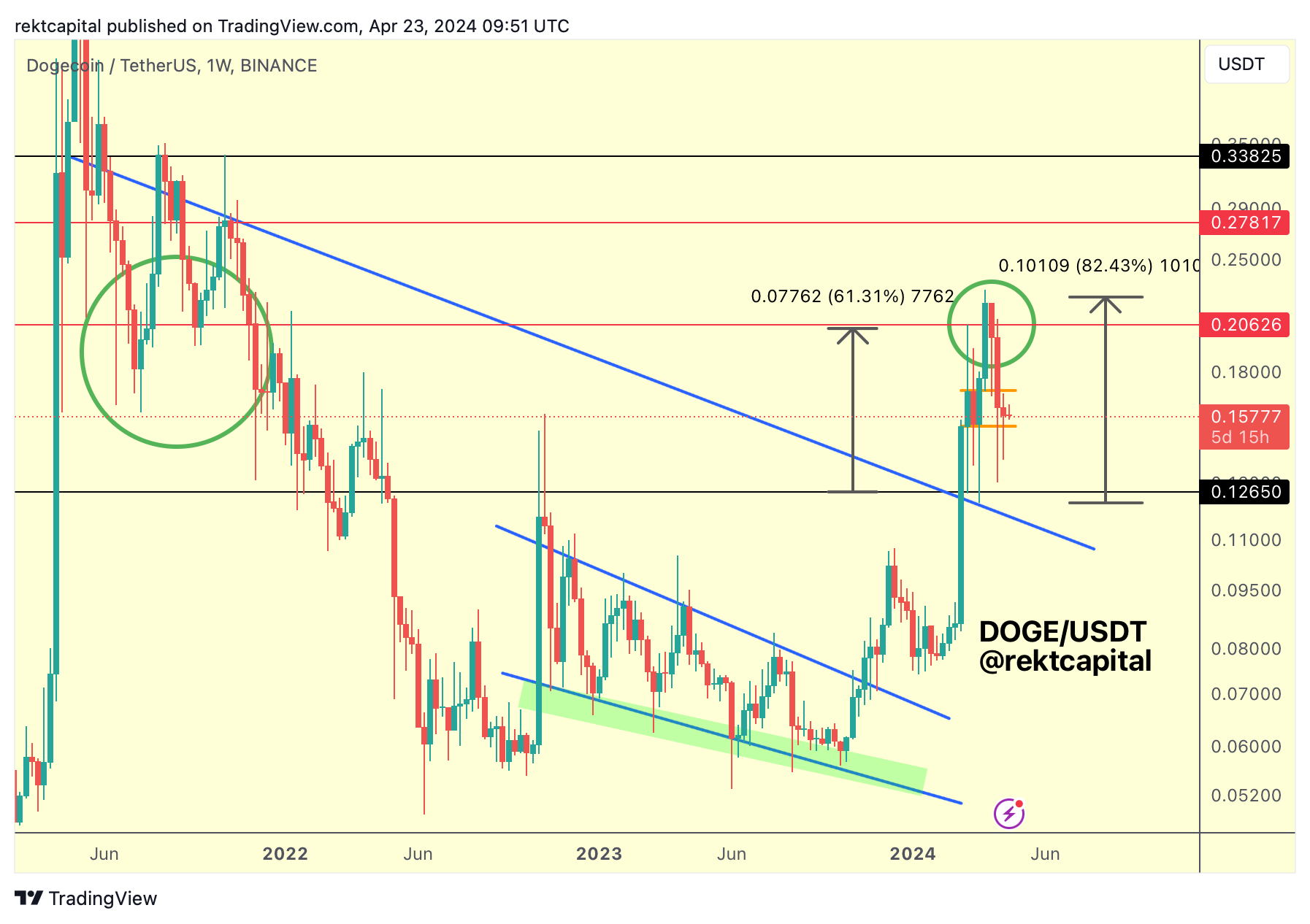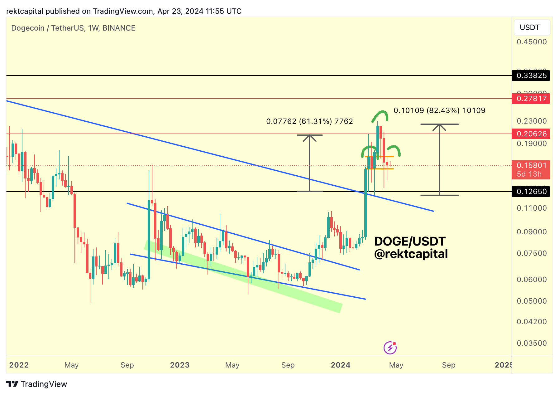 This buy-side pressure at the Range Low has enabled for DOGE to reclaim the bottom of the Bull Flag it had broken out from many weeks ago.
