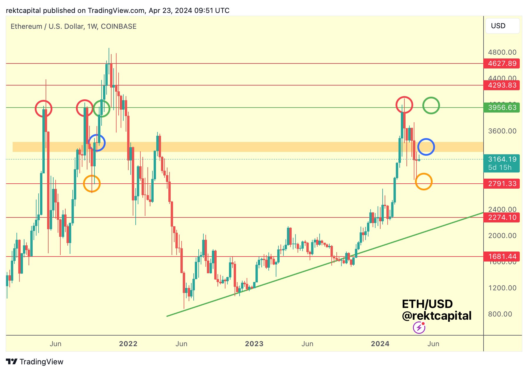 The hype still needs to dissipate after a fantastic Q1 and whether that means that ETH's price needs to continue to dwindle within this range and consolidate here, perhaps that is what the upcoming weeks may hold for crypto's second biggest asset by market cap.