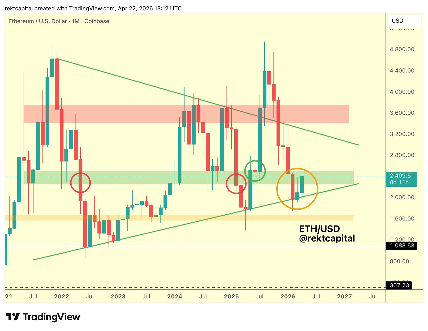 How Ethereum Monthly Closes relative to this green zone will be pivotal.