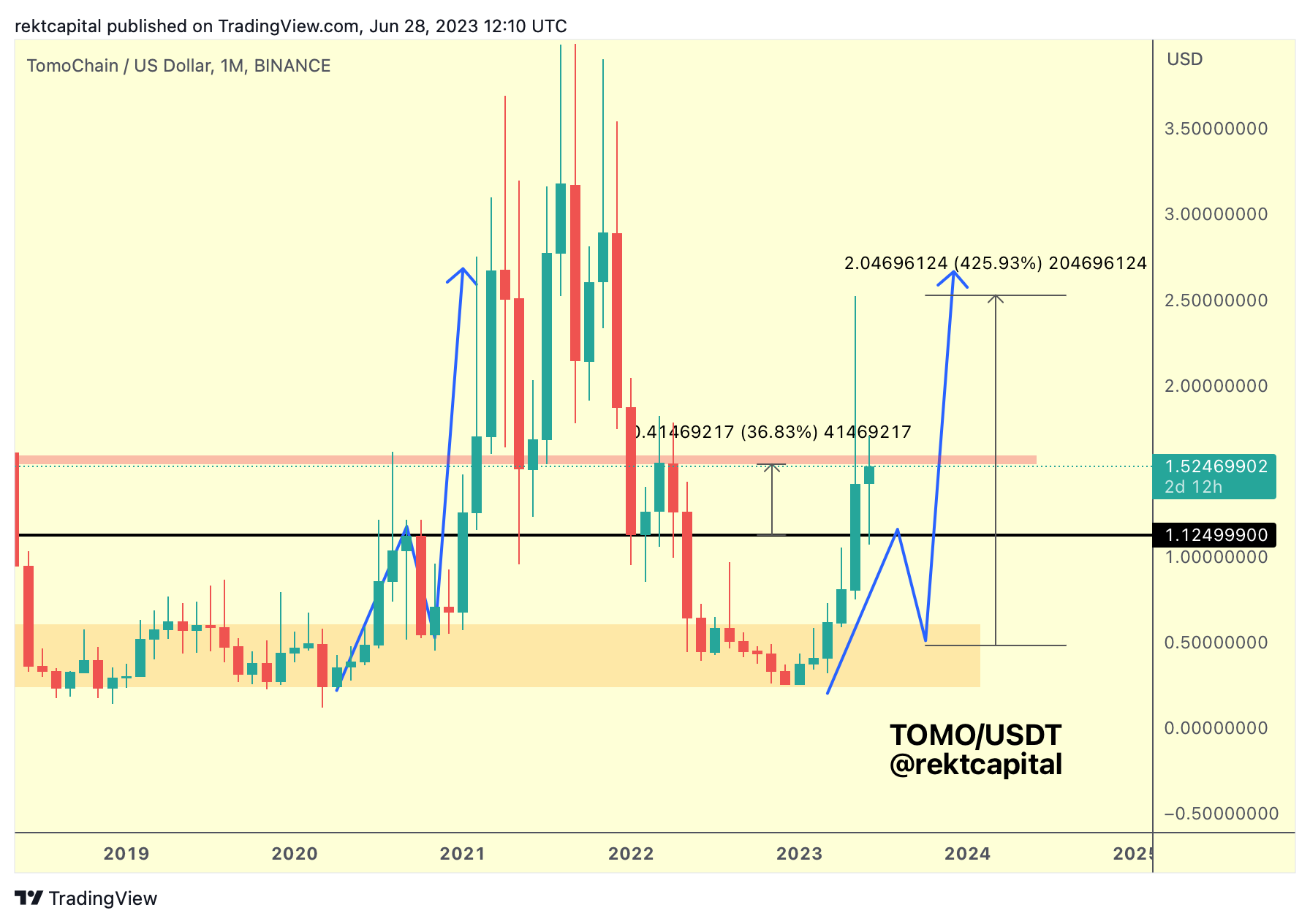 If TOMO were able to Monthly Close above the red resistance, we'd be able to witness exponential trend continuation from TOMO.