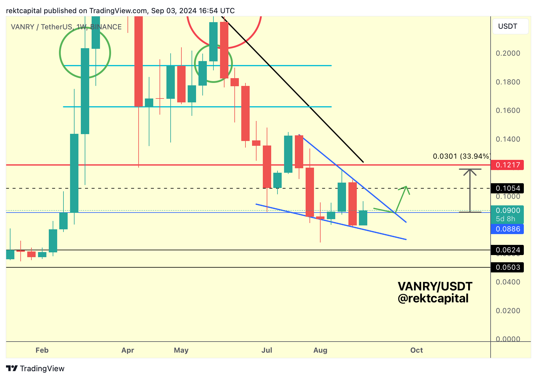 VANRY needs the Weekly Close above the blue level, just like the one it performed three weeks ago, in order to confirm further upside from here.