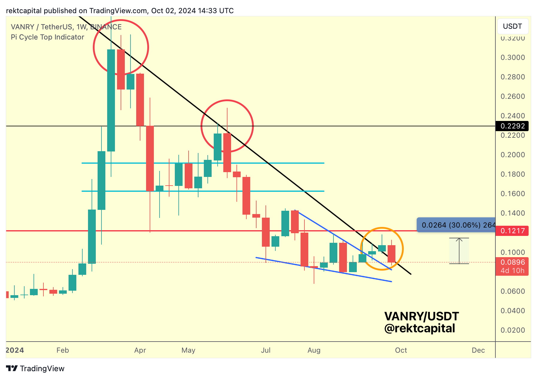 Over the past few weeks, we've been covering VANRY from when it was still consolidating inside its Downtrending Channel (blue):