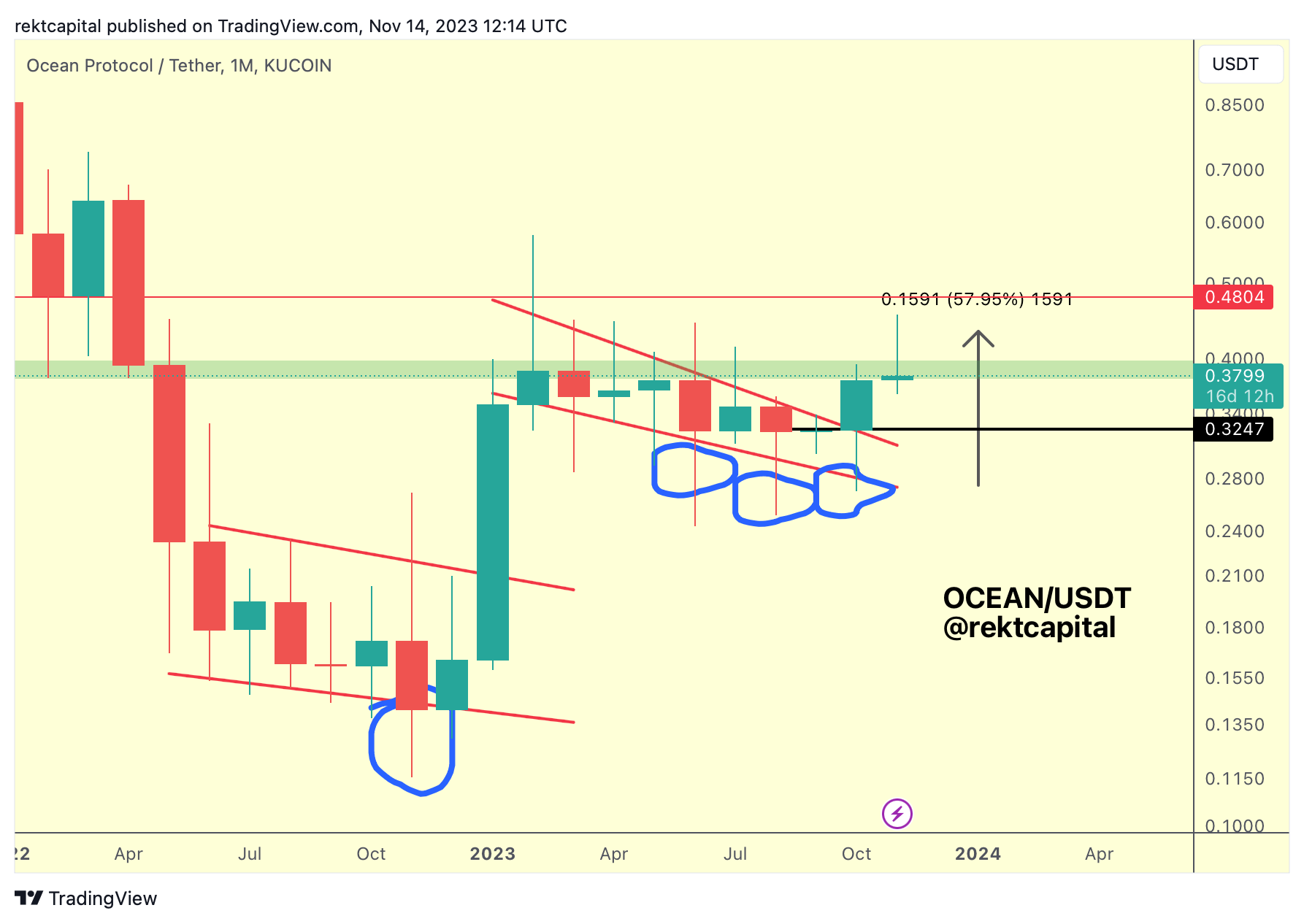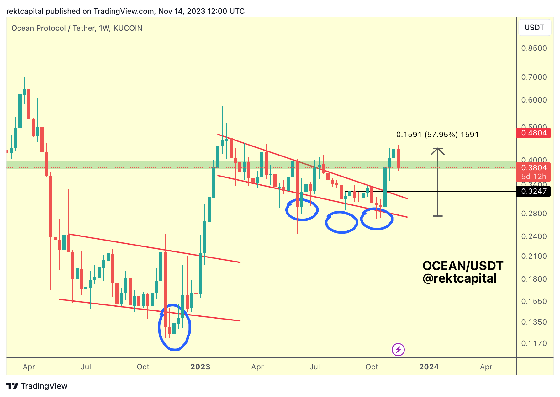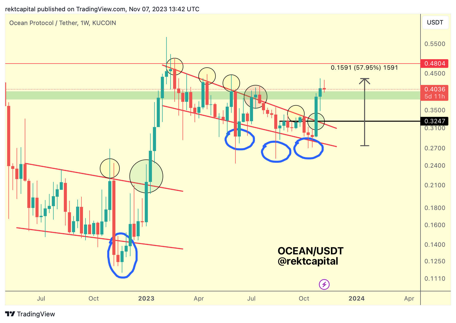 OCEAN is now trying to retest this green region as new support on the Weekly timeframe.