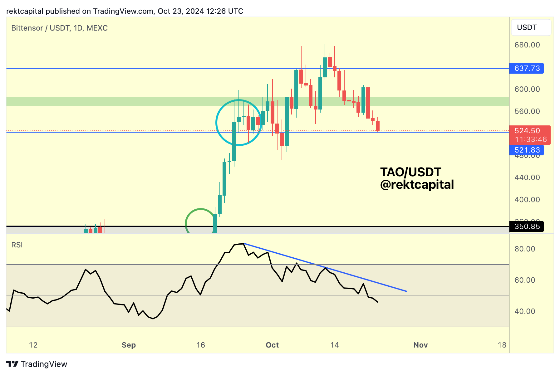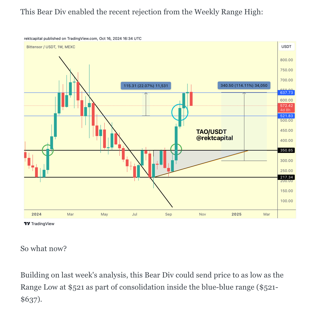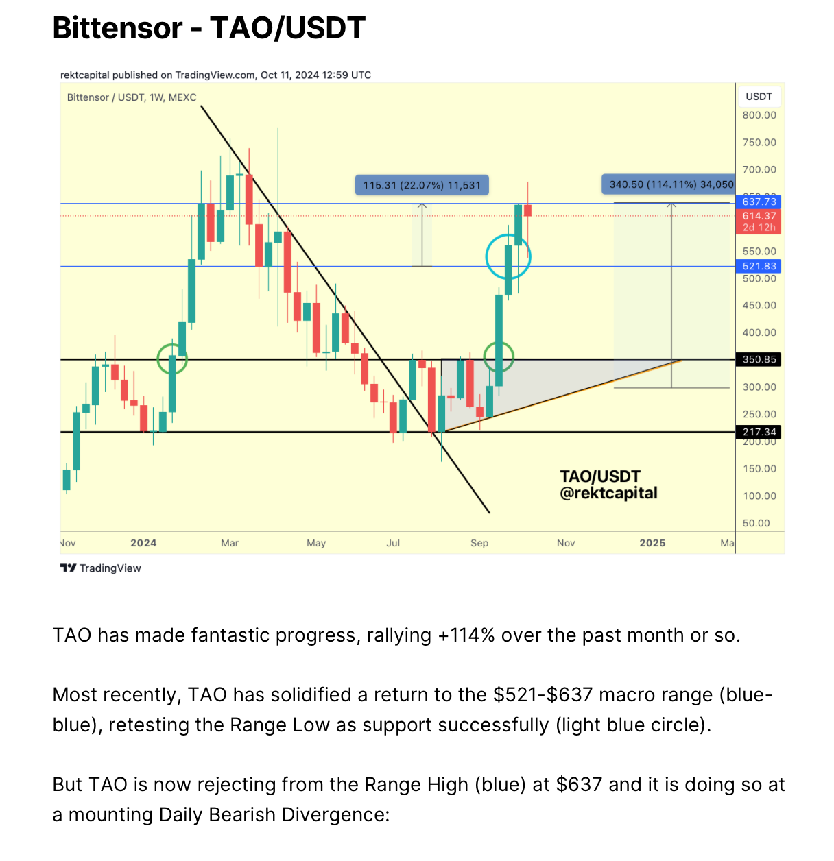 Earlier this month for example, I shared how TAO was hovering below key Range High resistance, while struggling with a Bearish Divergence on the Daily: