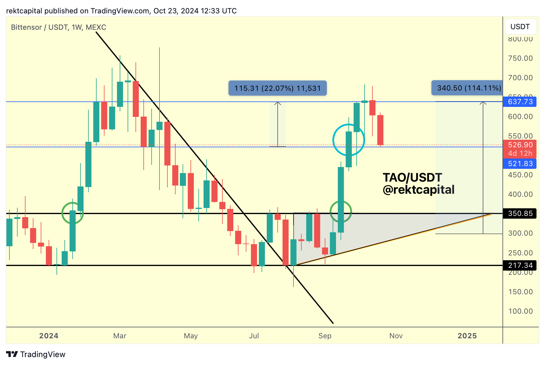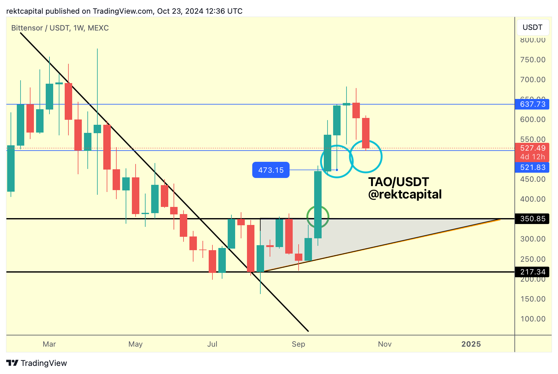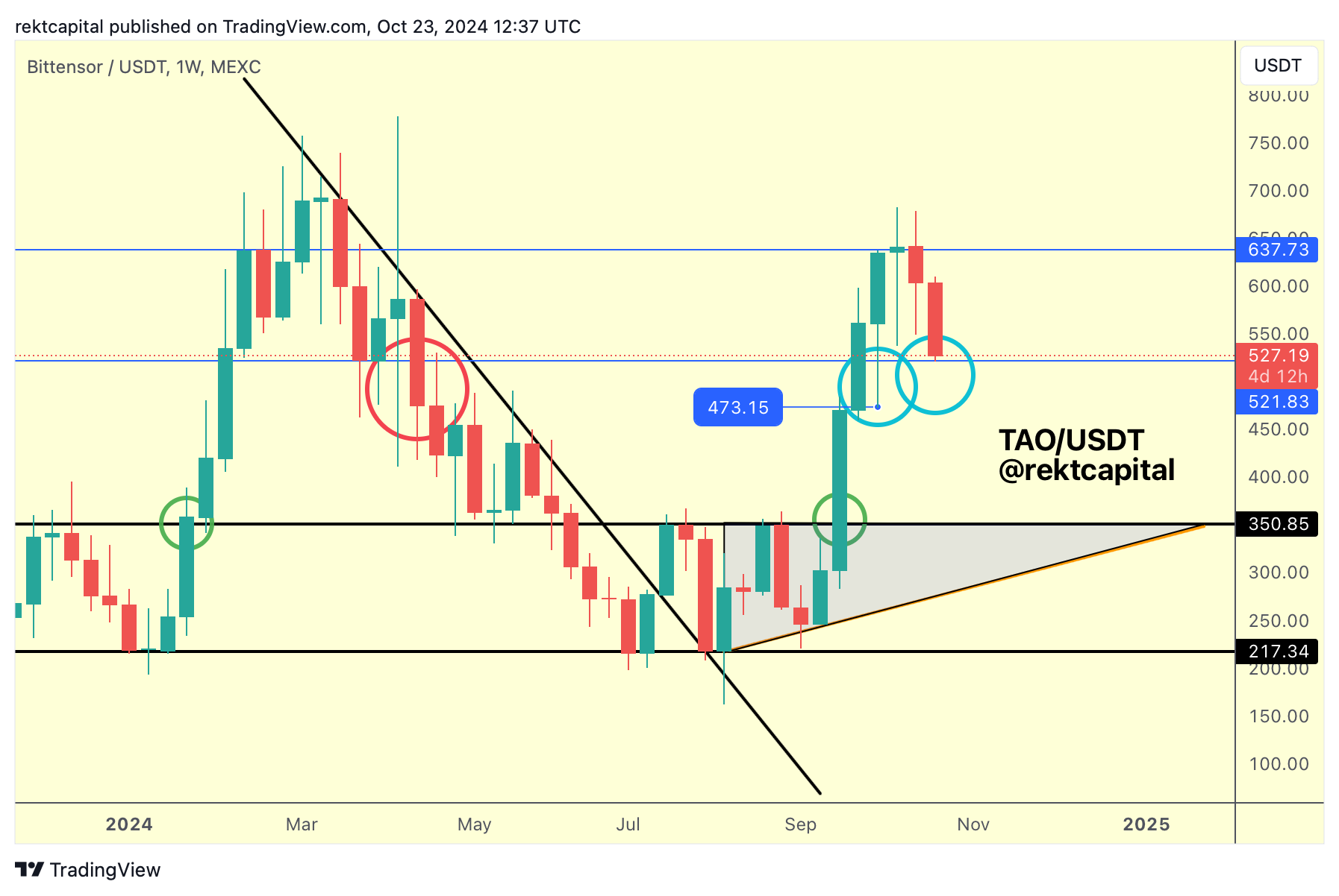 But there is a distinct possibility for TAO to downside wick below this $521 level, like it has done so in the past: