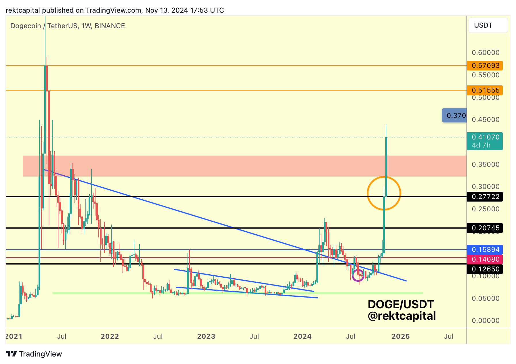 However, for the time being, DOGE isn't struggling with it in the slightest.