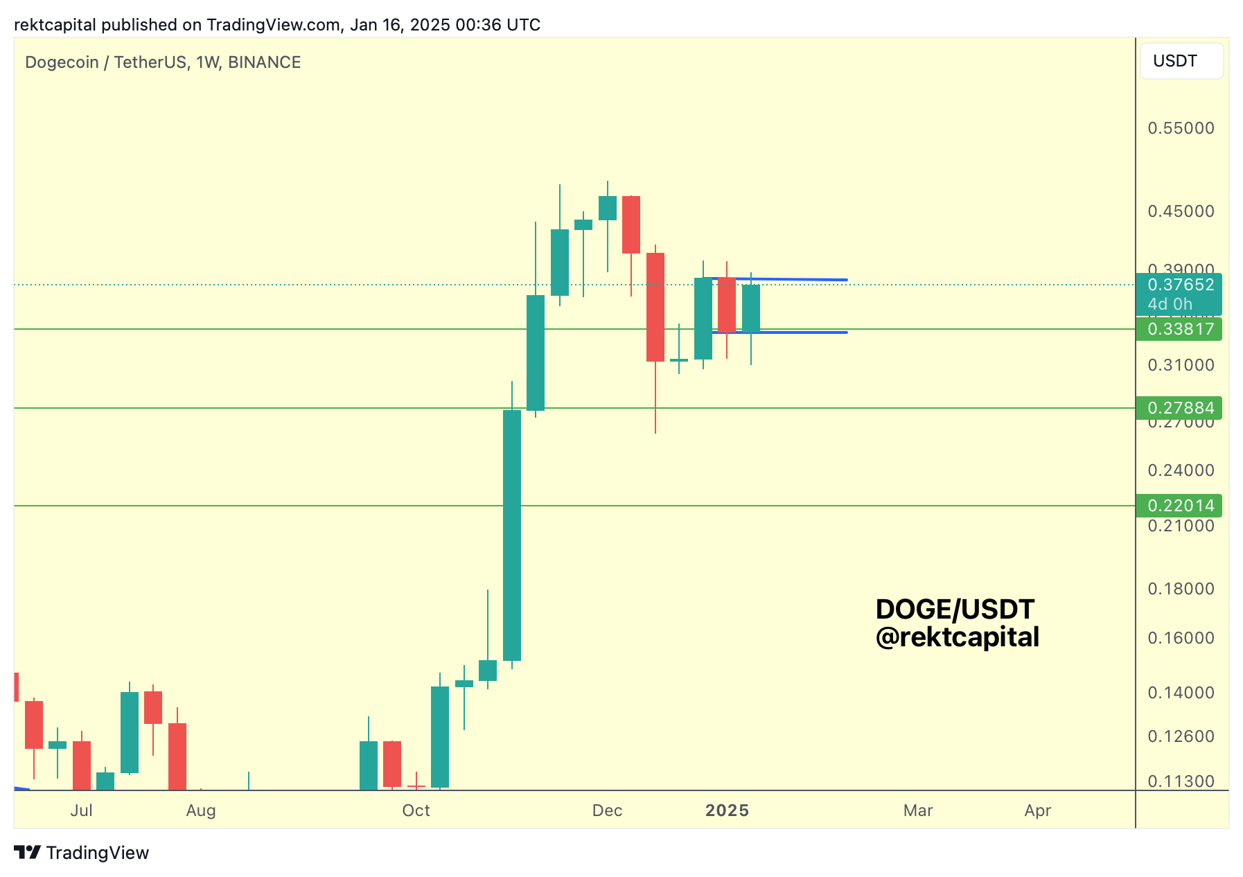 Dogecoin is trying to follow Bitcoin in its footsteps by forming a Monthly Bull Flag.