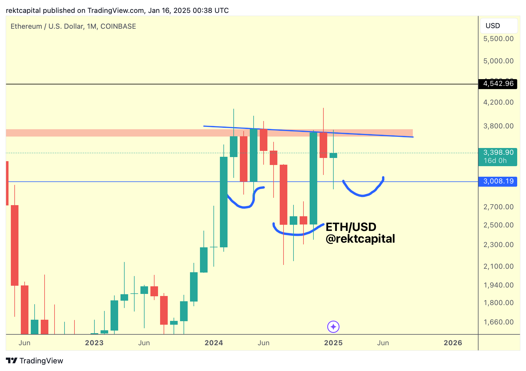 ETH has since tagged that $3k psychological level to build out a potential base for the emerging Right Shoulder: