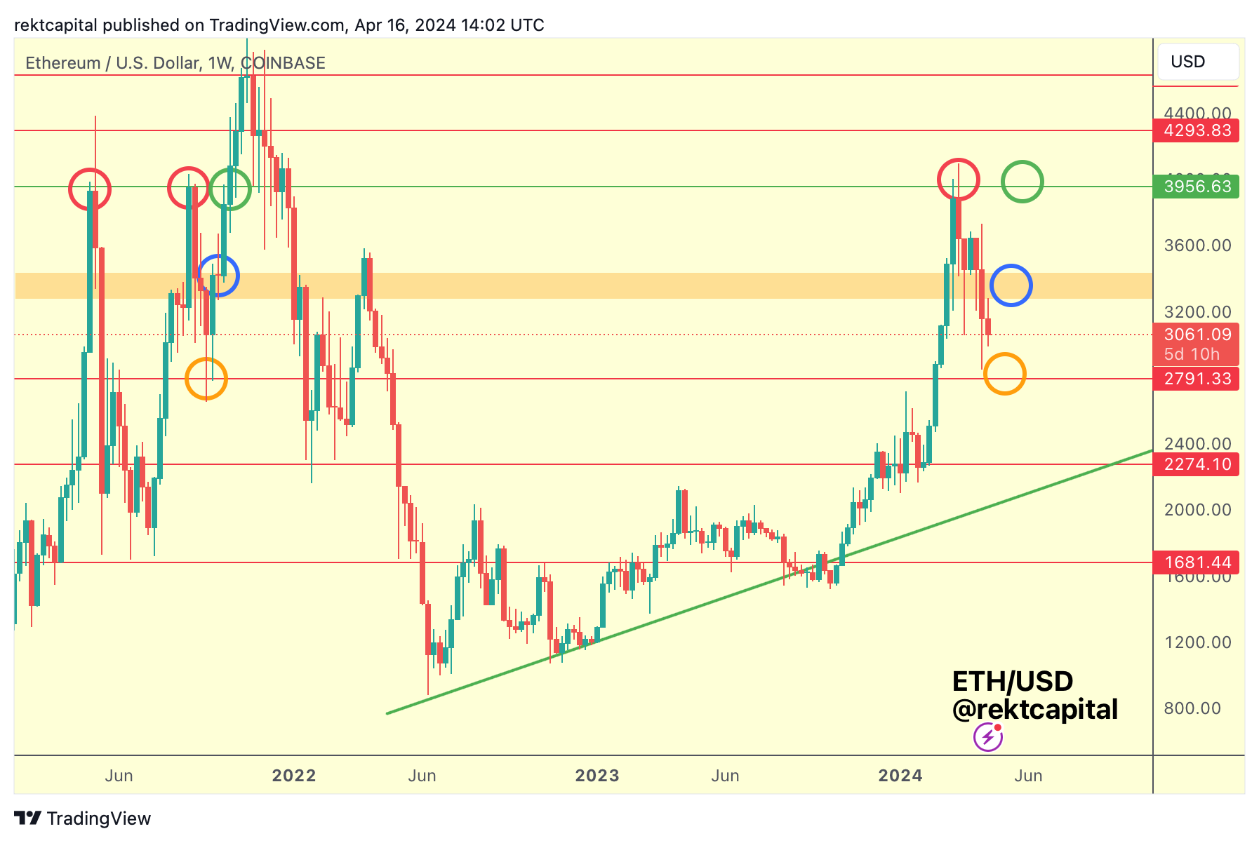 In short, it was all about whether price could hold the blue circled retest because if not, ETH would probably downside wick into the $2800 level (orange circle).