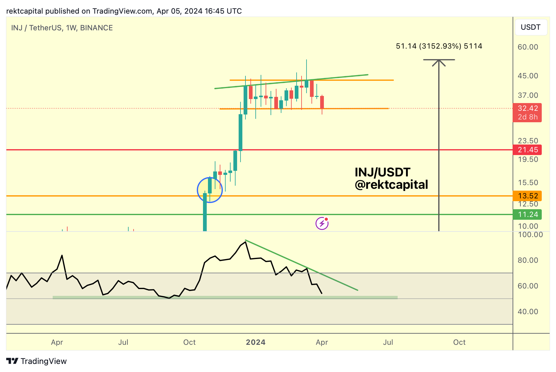 Or will this RSI retest take place while INJ fakes a breakdown?