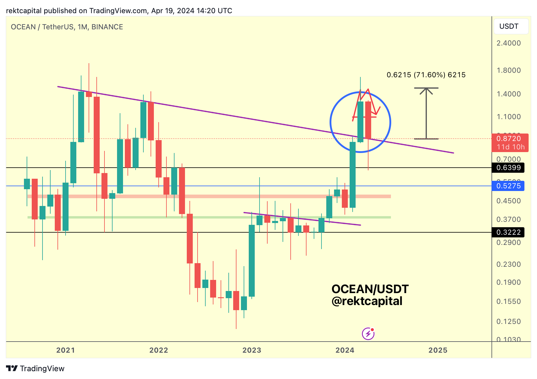 In last week's edition of the Altcoin Newsletter, I talked about OCEAN's potential upcoming retest of the Macro Downtrend: