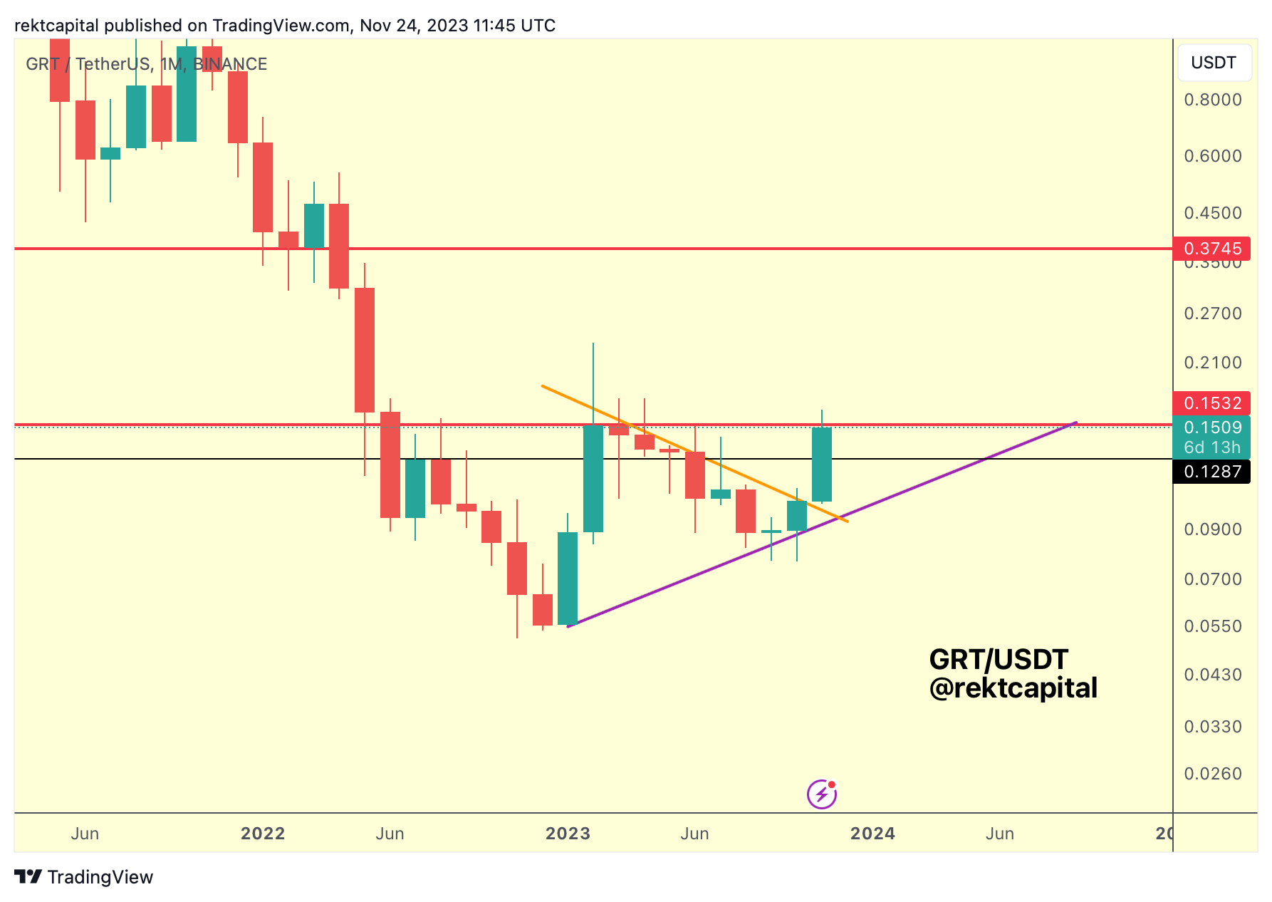 In November 2023, we spoke about GRT's Ascending Triangle and how it was developing to enable a breakout into the red-red macro range ($0.15-$0.37):