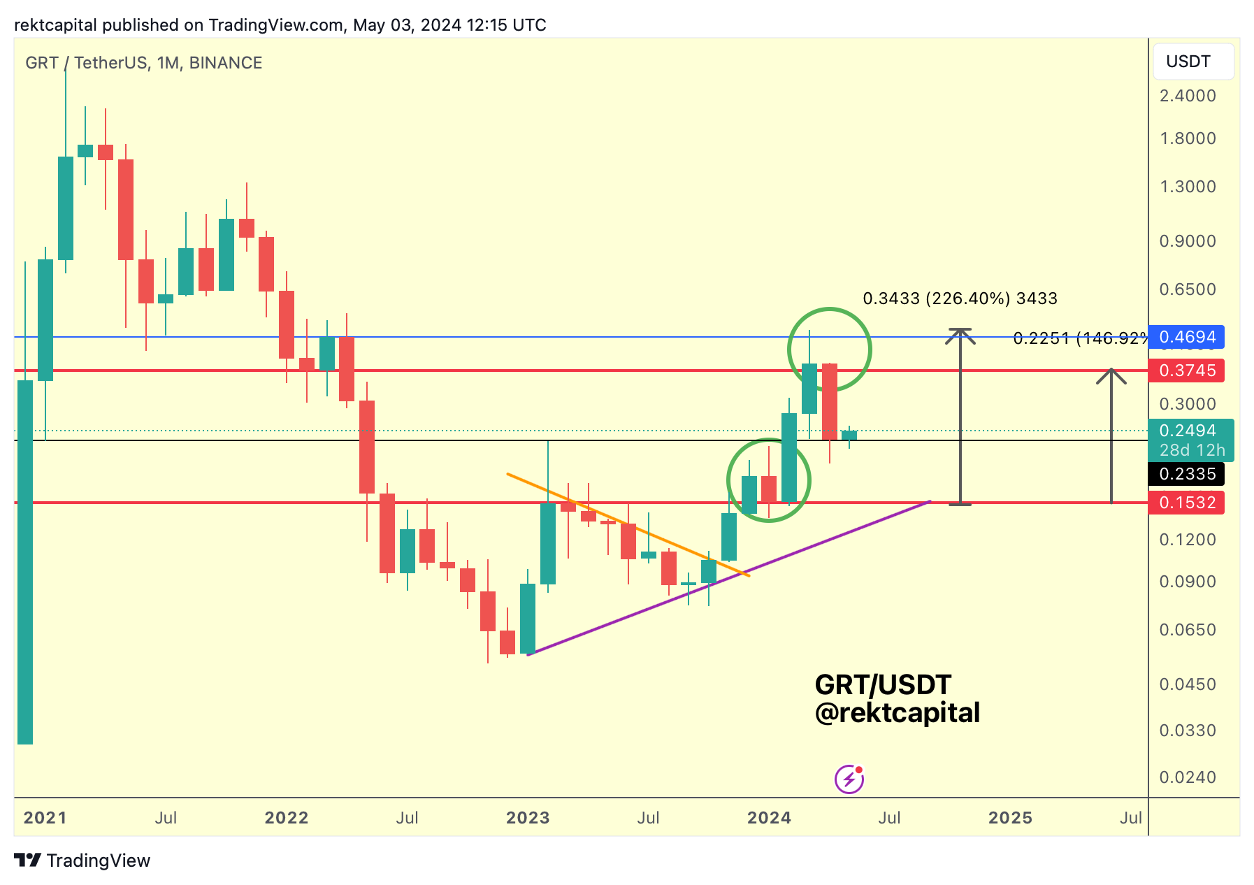 In fact, macro-wise, GRT is still just inside its red-red range, the same range price rallied across throughout 2024.