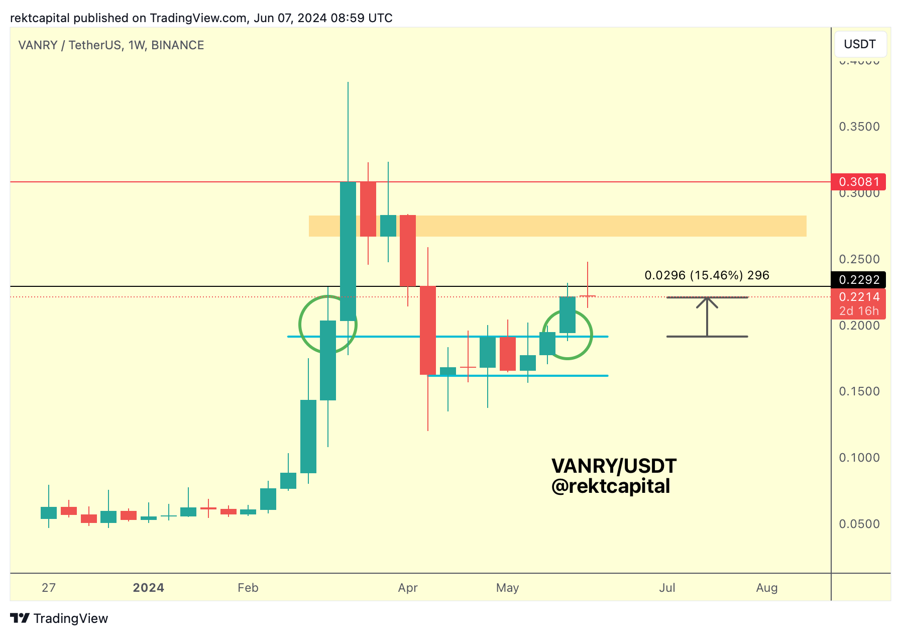 VANRY has rallied +15% since breakout and will need to reclaim the black ~$0.22 level as support to position itself towards the orange area, which itself would need a reclaim in the future - but that's a story for another day.