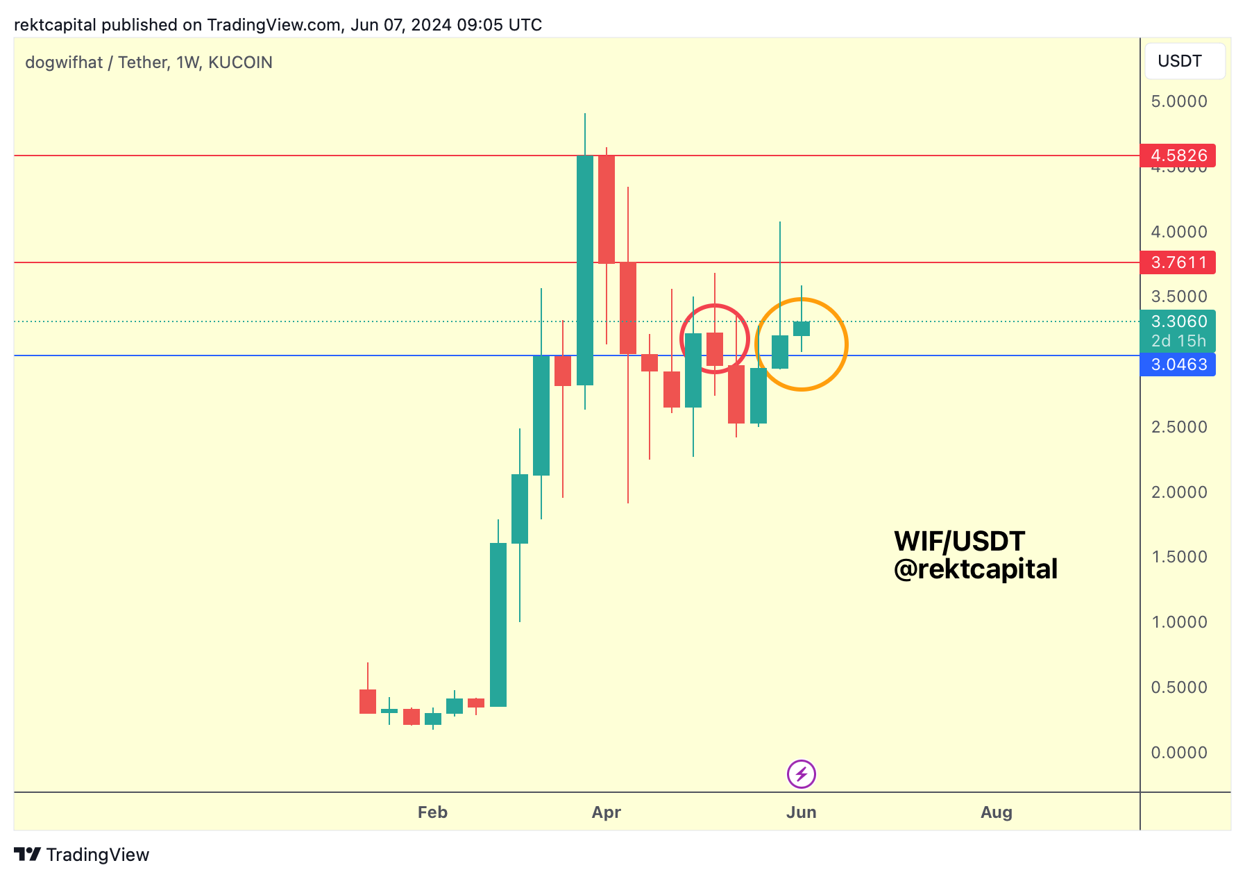 A few weeks ago (red circle), WIF Weekly Closed above the blue level but failed its retest in the following week.