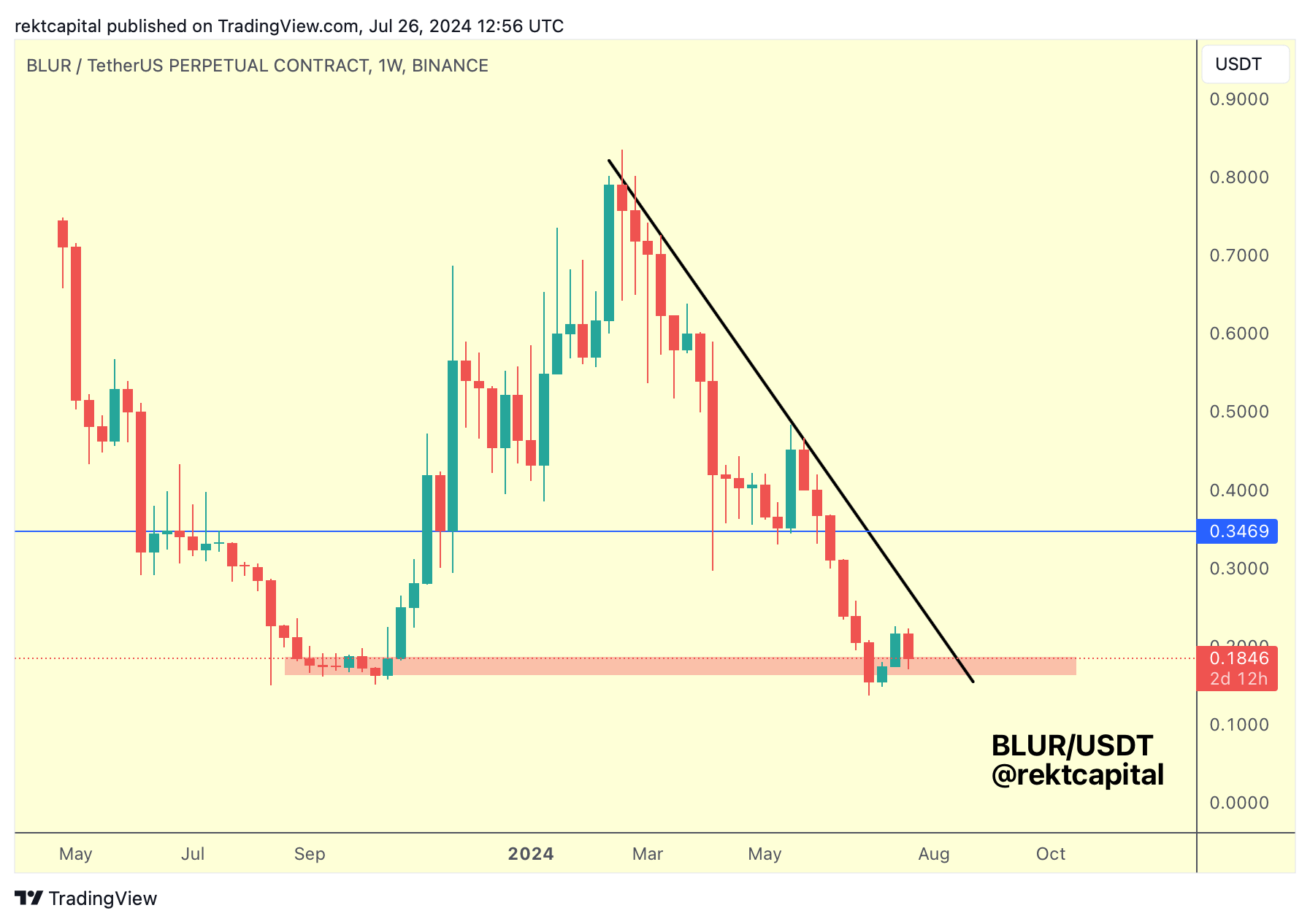 BLUR is currently in the process of retesting the top of a historical demand zone as new support, following a brief deviation below it a few weeks ago.