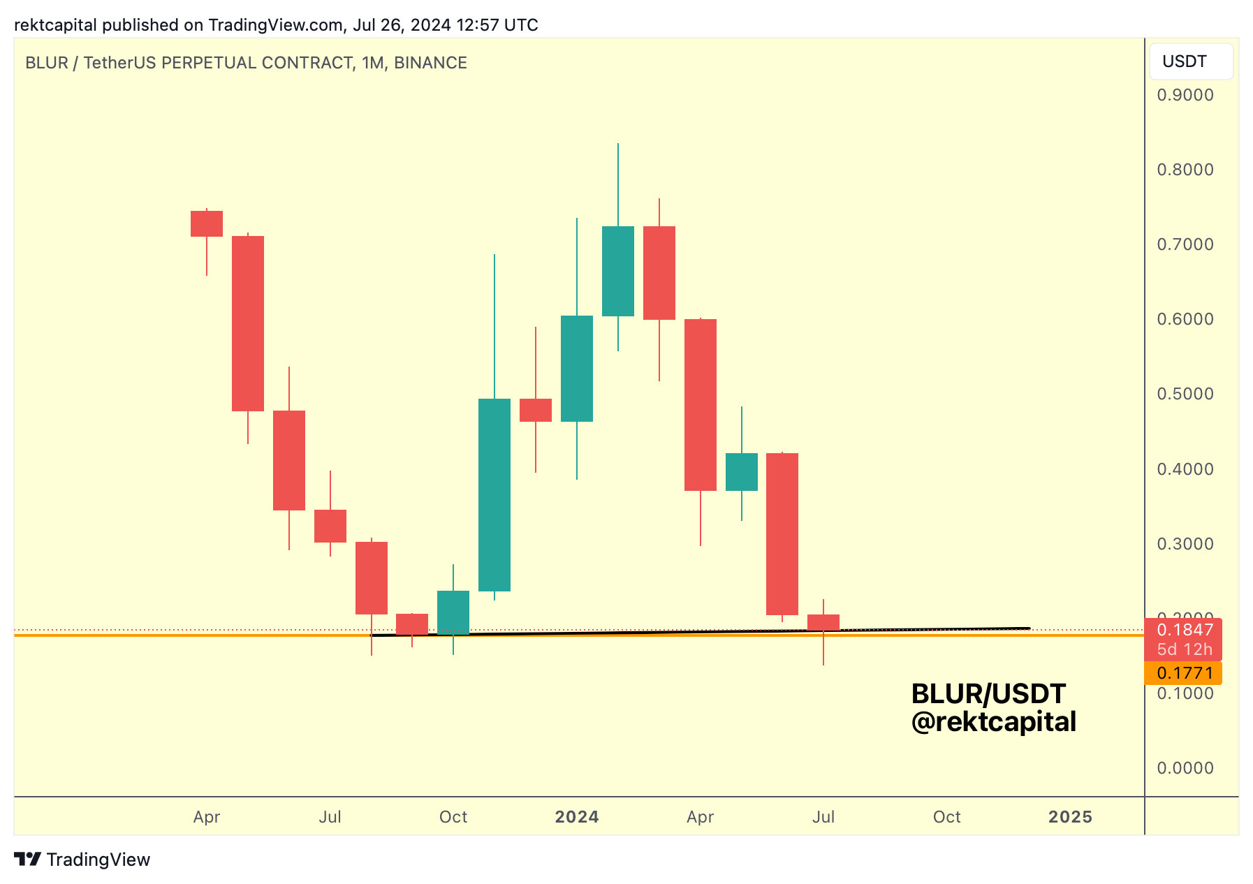 If BLUR Monthly Closes above orange, that would mean that a historical Monthly support has continued to act as support and perhaps even at a delicate Higher Low (black), which would be a sign of premium-buying behaviour.