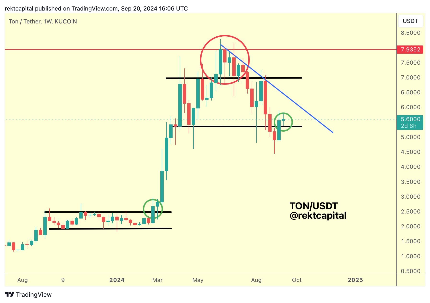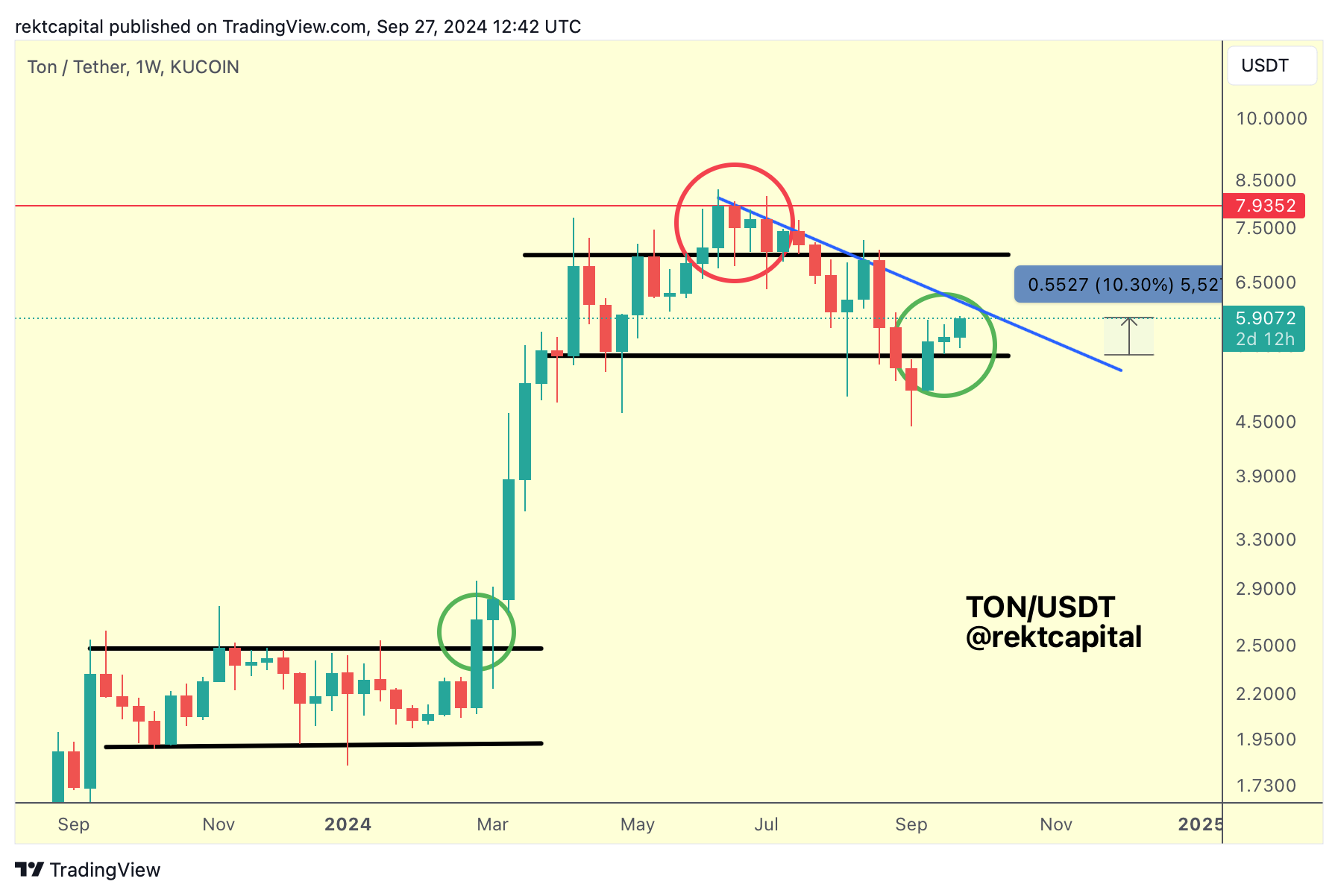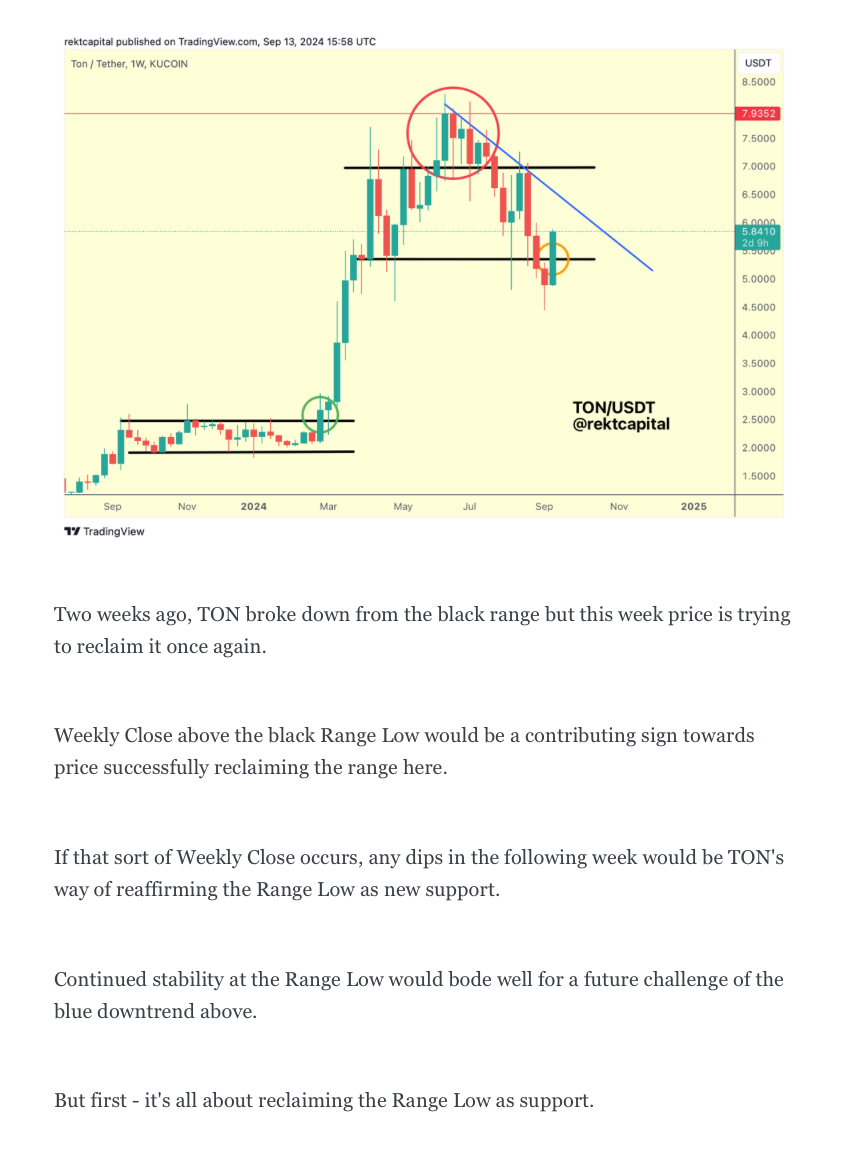 Last week, that analysis slowly but surely started to play out, whereby TON Weekly Closed above the Range Low and set itself up for a retest: