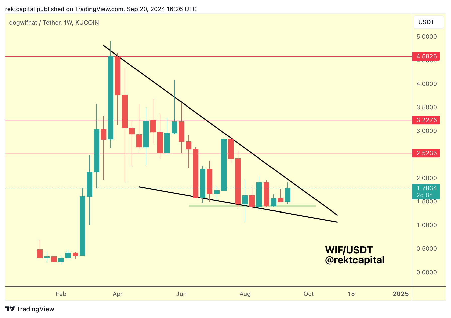 WIF broke out from its main pattern, ending the Macro Downtrend and rallying +26% towards that key $2.52 resistance above.