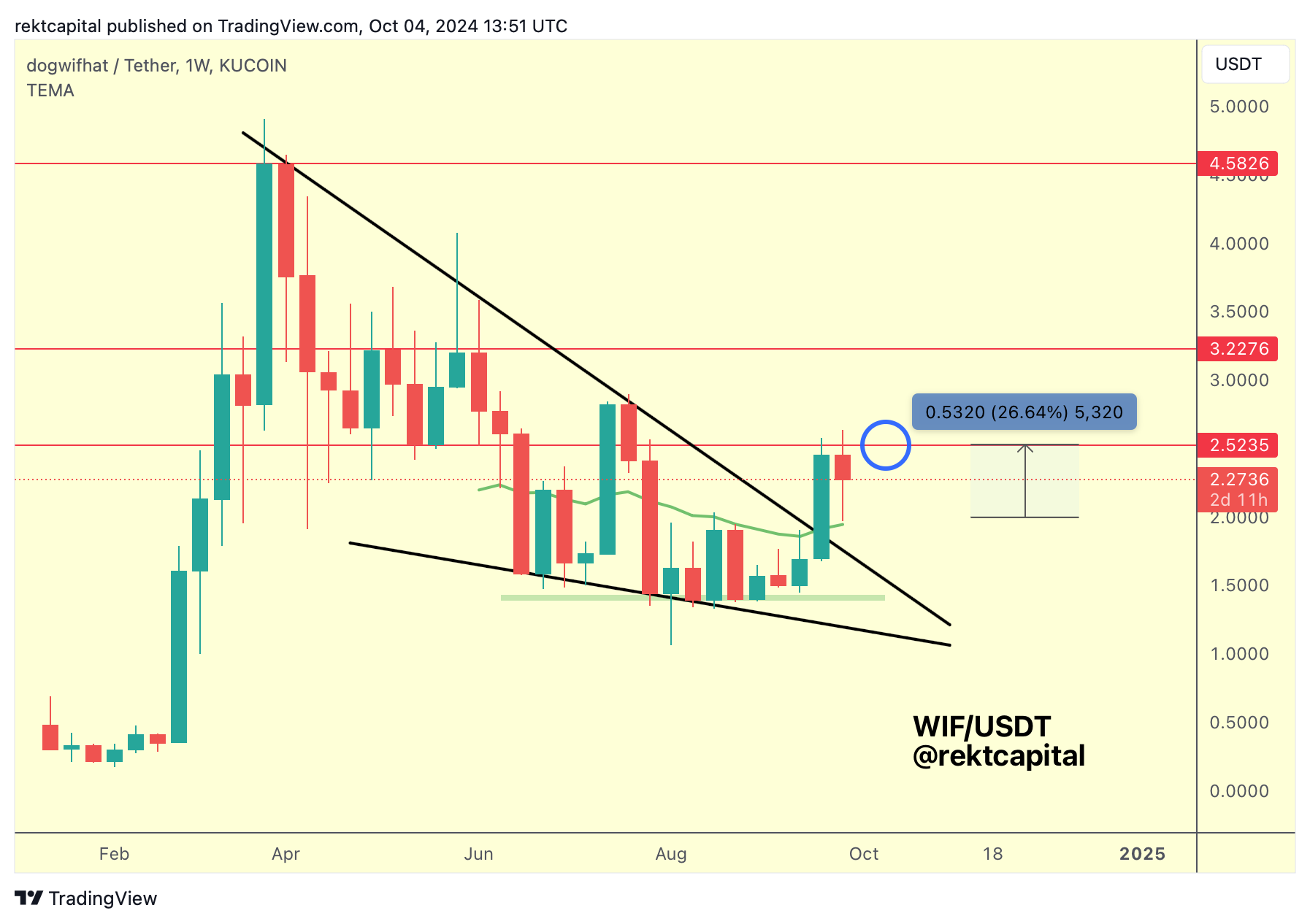 Two weeks ago, we covered how WIF was preparing for a breakout from its Macro Market Structure, with the red resistance of $2.52 a key first resistance for WIF: