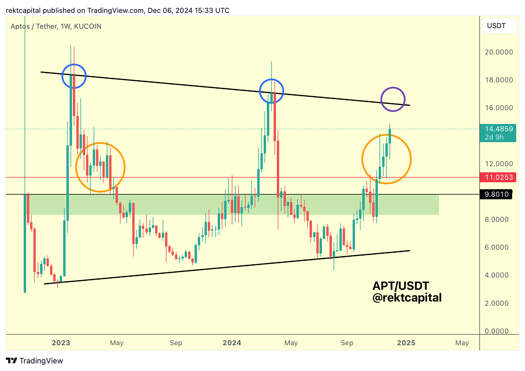 Aptos is developing a clear macro market structure (black macro wedge).