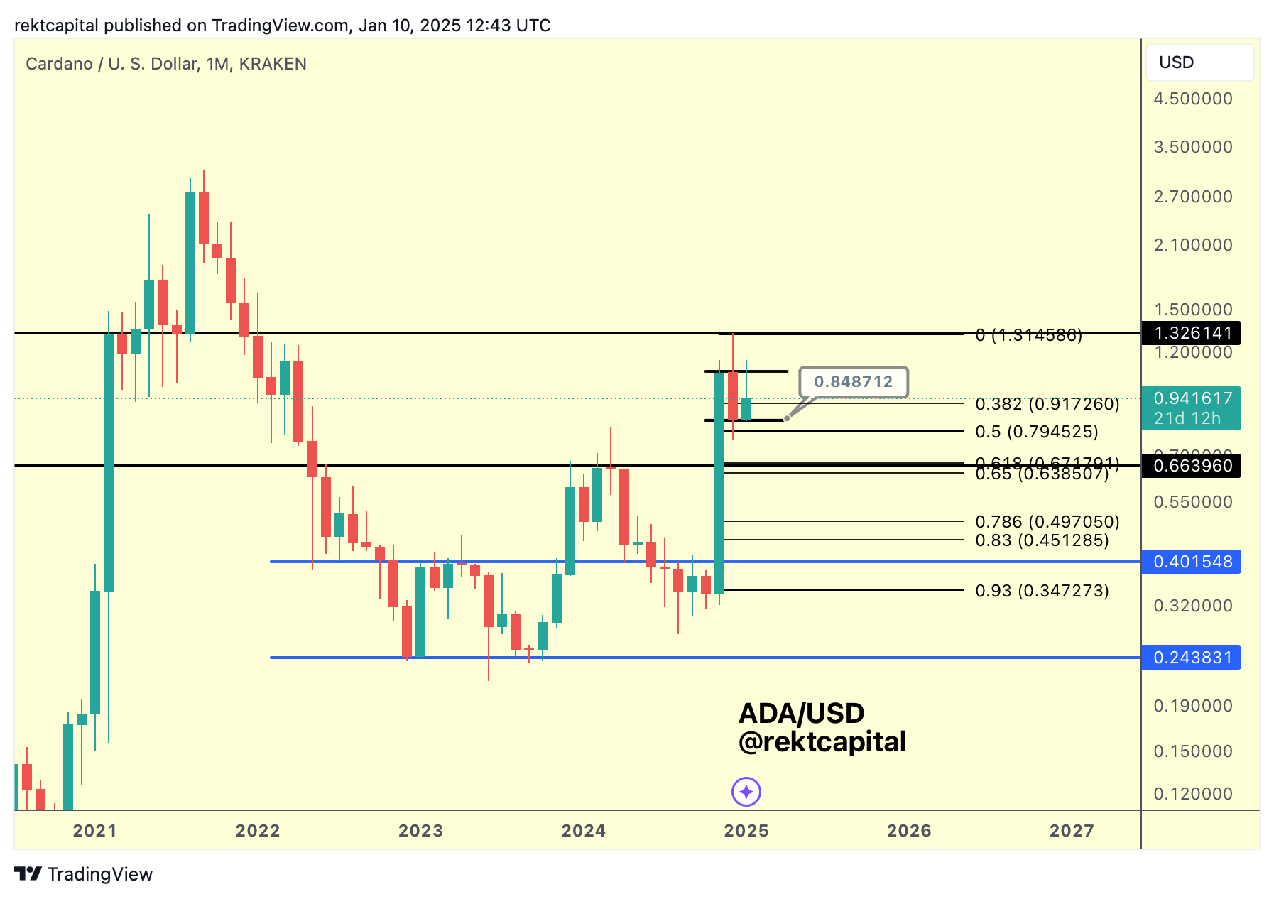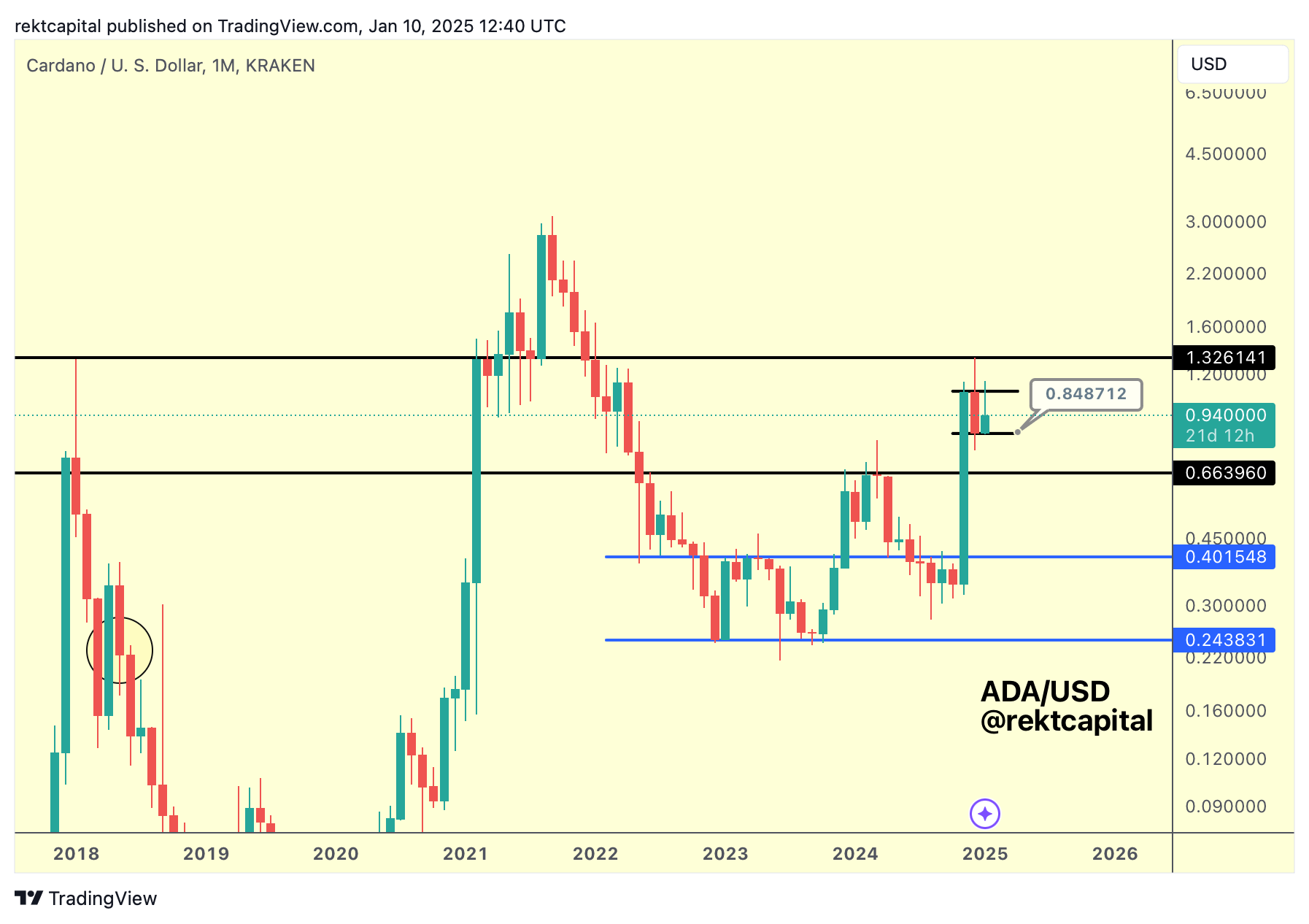 Cardano is located in its macro range of $0.66-$1.32.