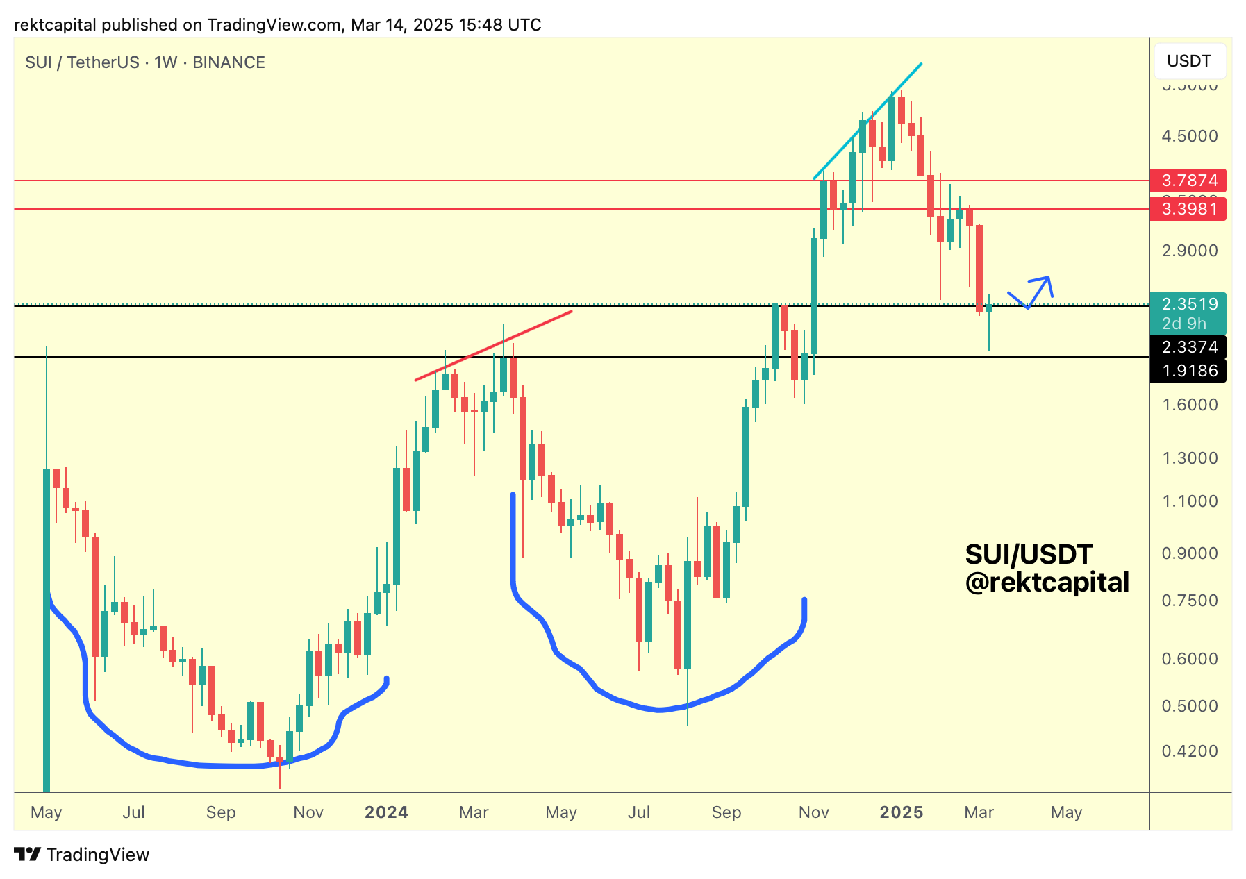 If SUI is able to reclaim this Range High as support via a Weekly Close and successful post-breakout retest next week, price will be able to springboard to the upside as a result of generating some liquidity in a previous Re-Accumulation Range: