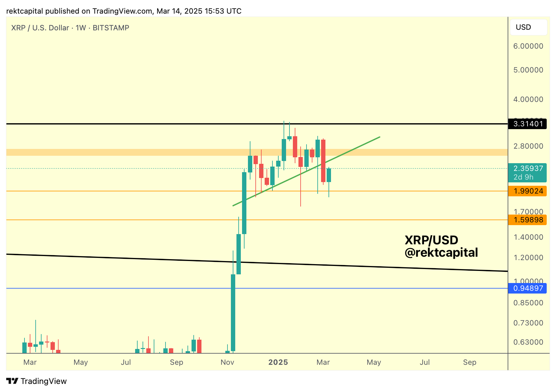 Interestingly, this green uptrend line is approximately confluent with the Weekly resistance above (orange box) and this will be the general region that XRP will need to reclaim for it to rally into the $2.80+ area.