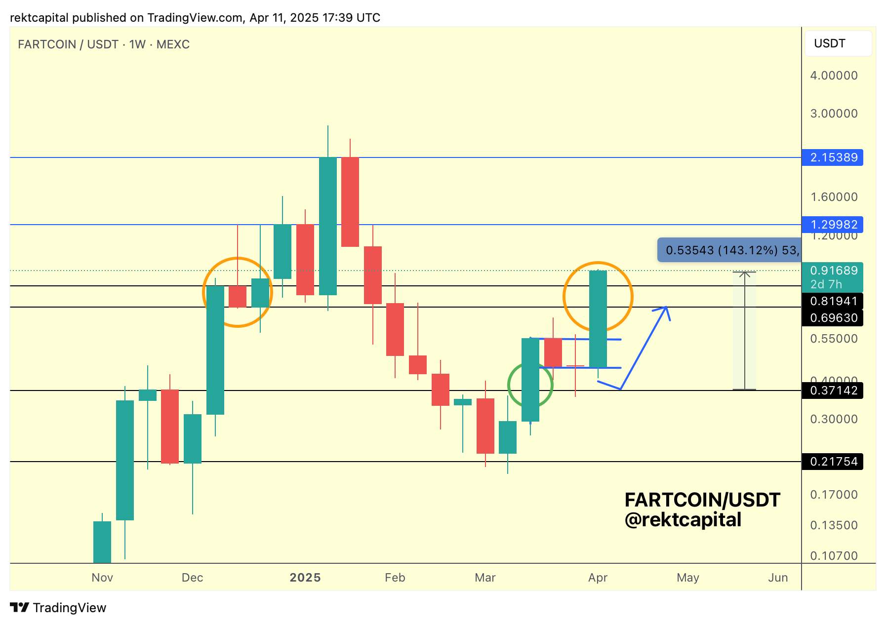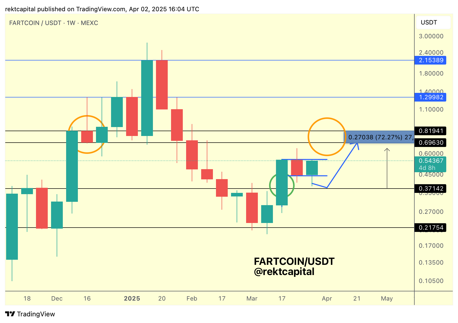 If FARTCOIN Weekly Closes inside the black-black range, encircled by the orange circle, then there would be scope for a re-accumulation within the range.