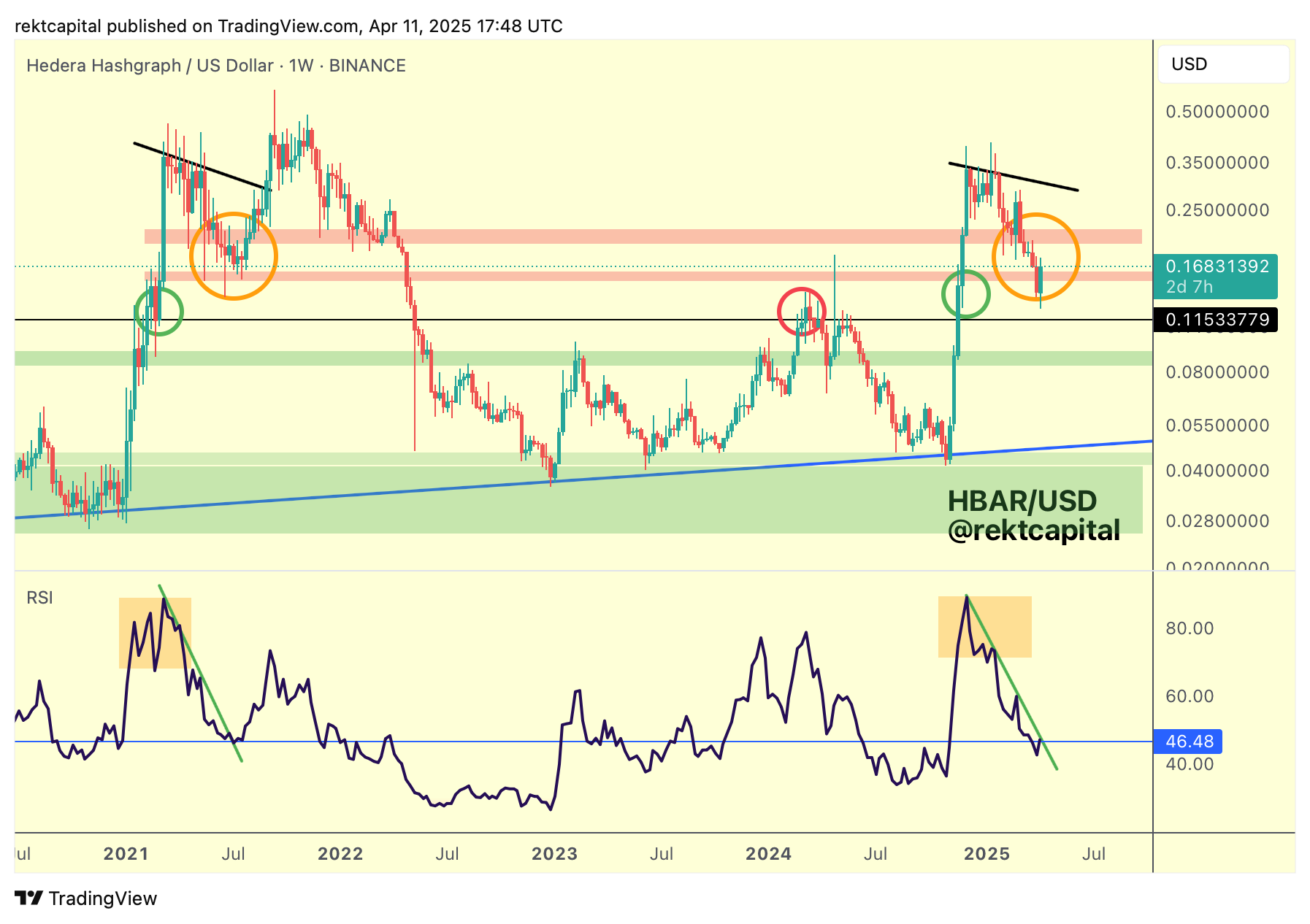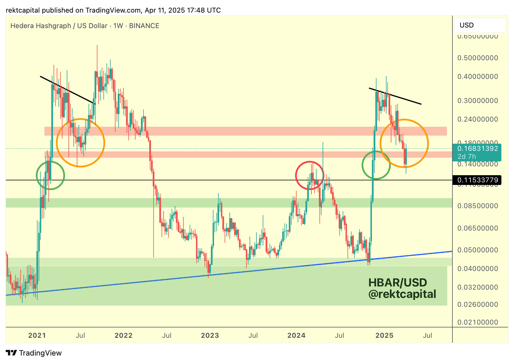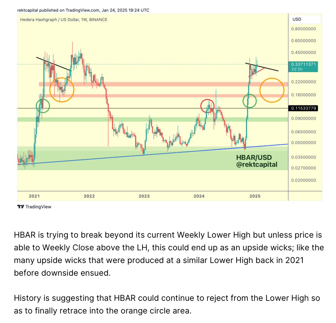 HBAR has indeed followed through and retraced right into the orange circled region, repeating history.
