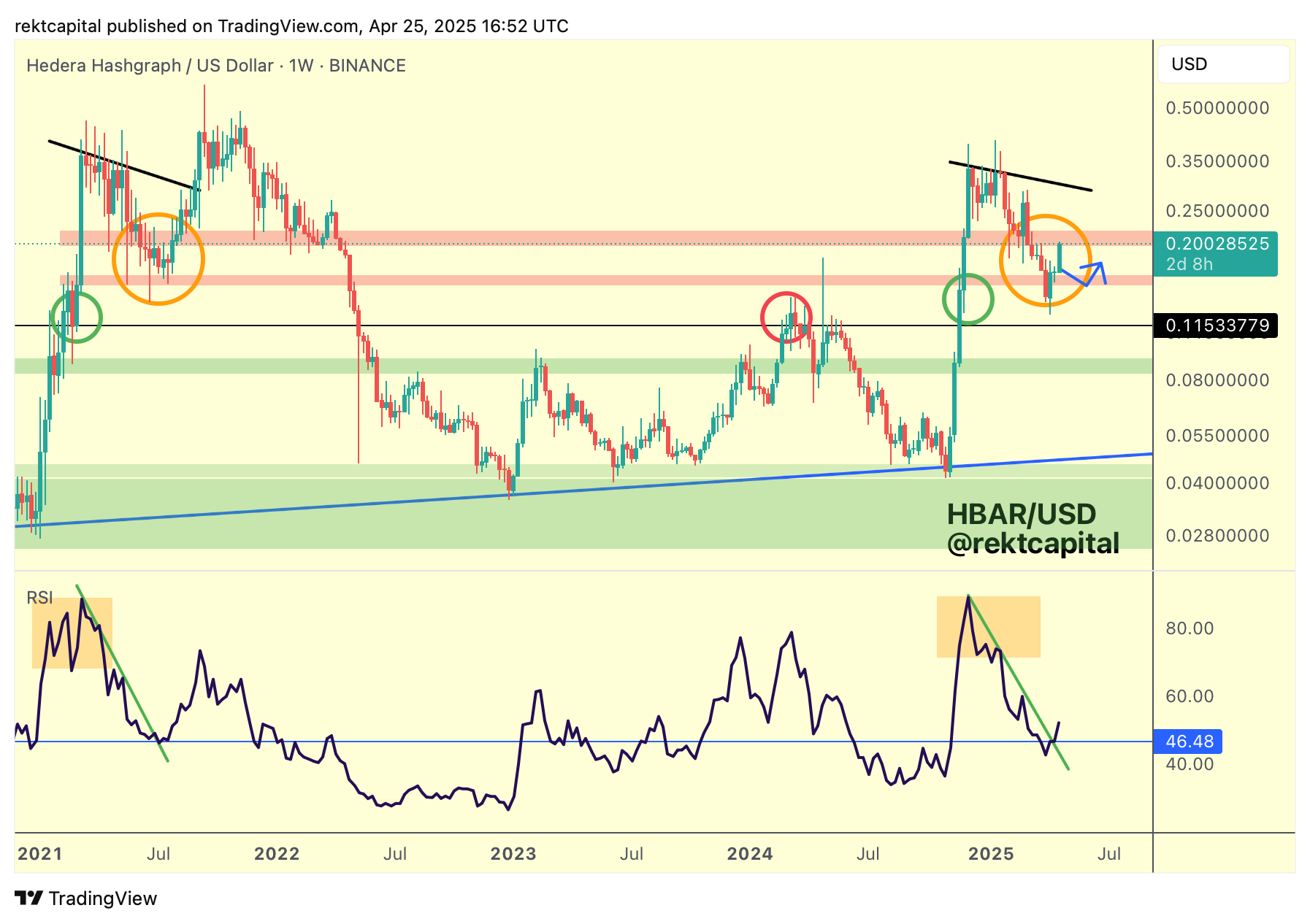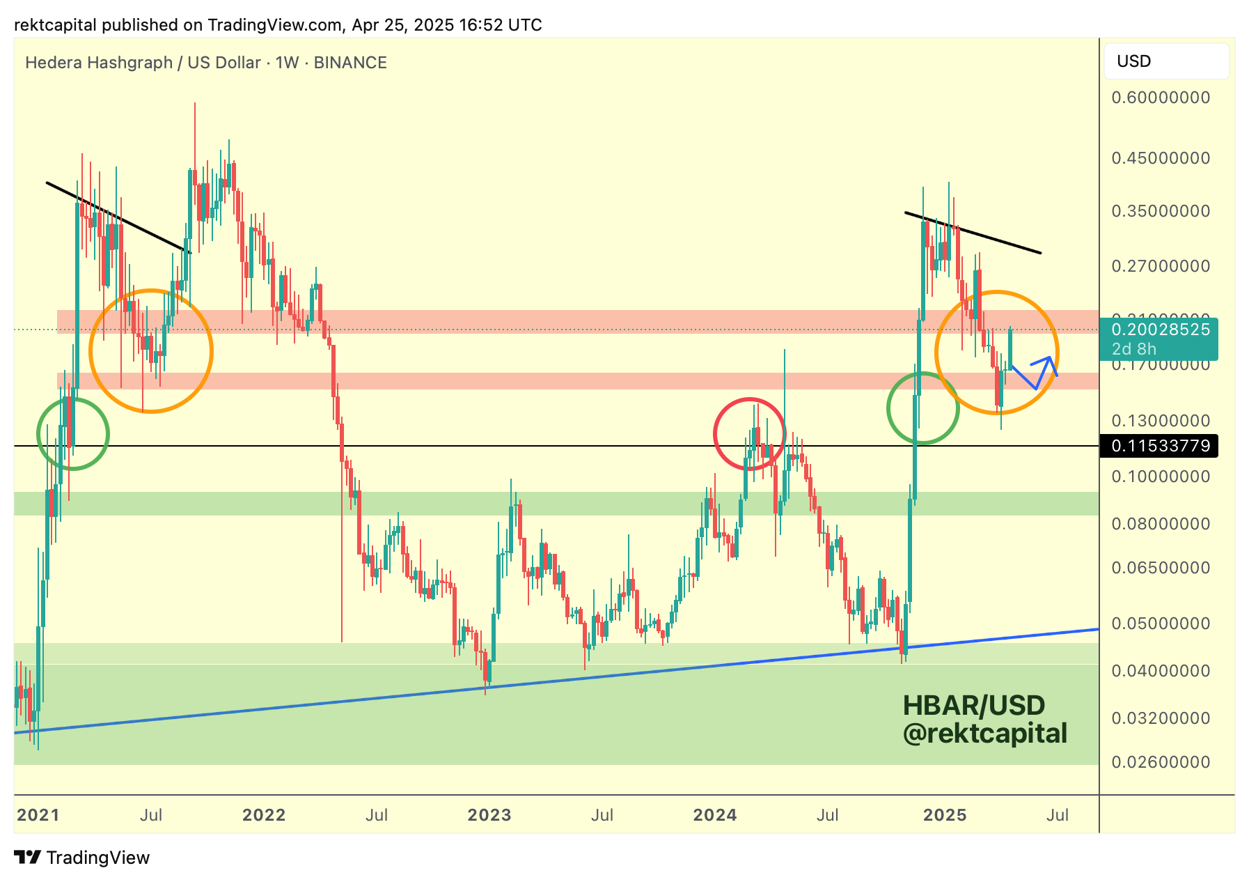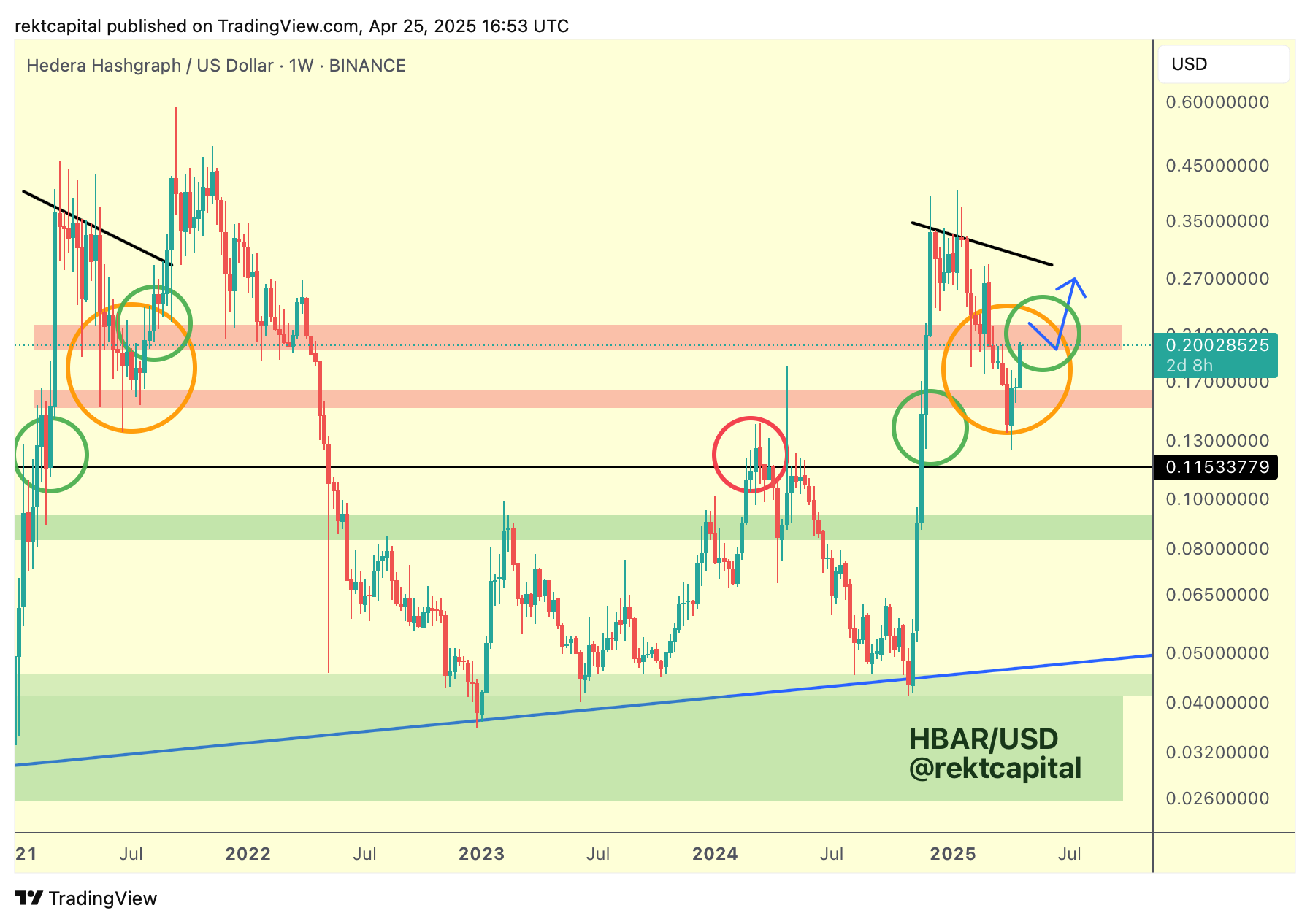 HBAR will need to Weekly Close inside and/or above its current red boxed resistance to continue its newfound momentum (blue path):