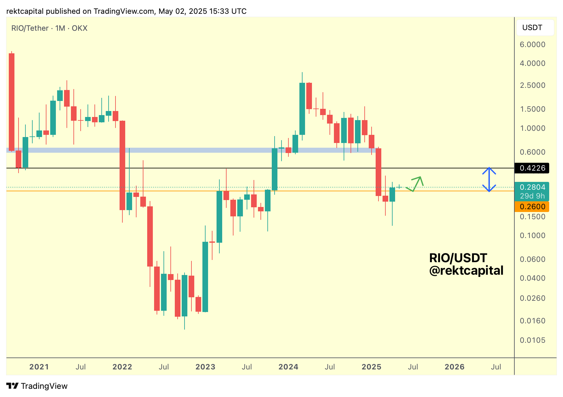 RIO has successfully retested the orange $0.26 level as support and has rallied +30% to the upside since then.
