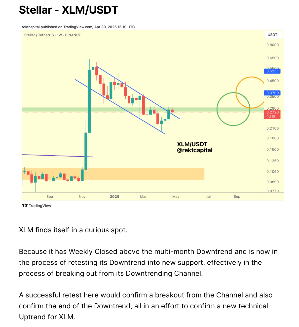 Late last month, I shared how XLM was on the cusp of confirming a breakout from its Downtrending Channel: