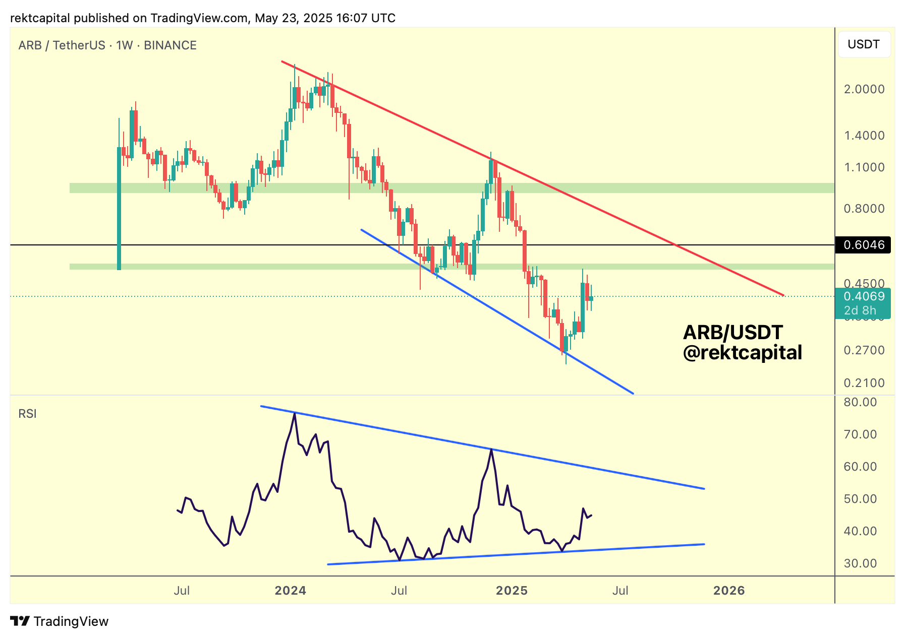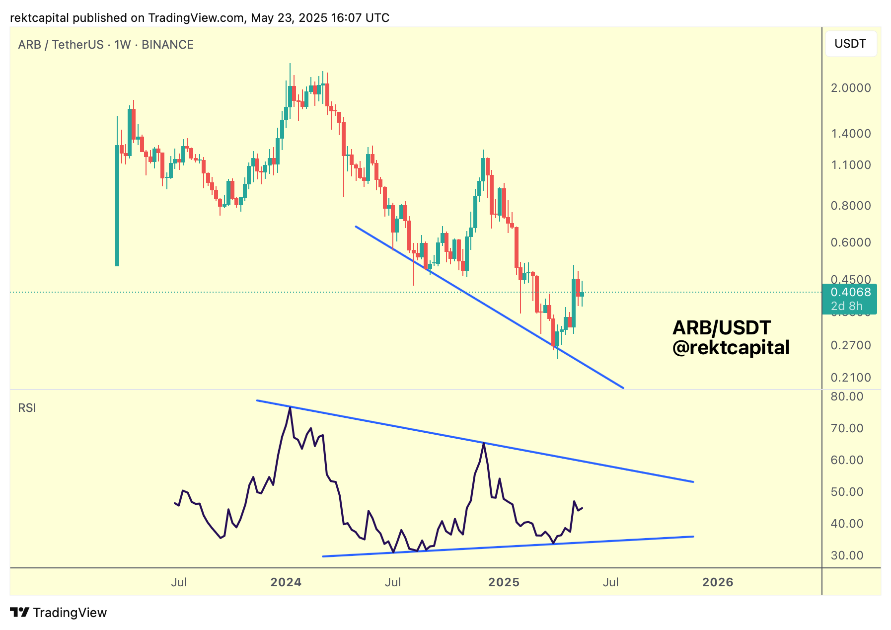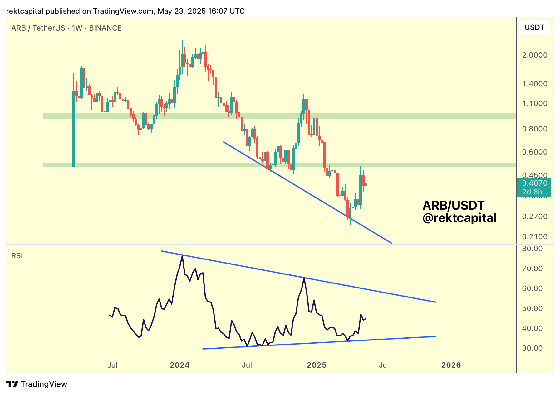 Arbitrum's price action structure is a little less clear compared to the clear pattern emerging on the Weekly RSI for ARB.