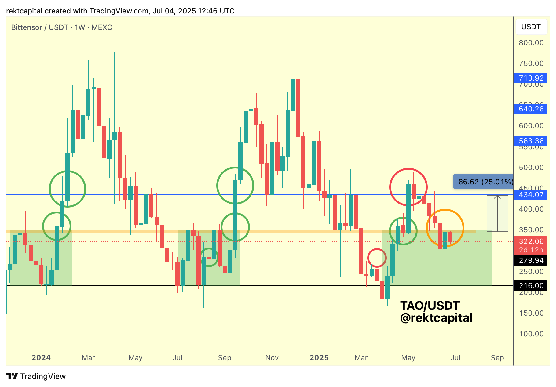 Generally, this has been the recipe for success for TAO holding the orange area as support - and this hasn't just been the recipe in late April 2025.