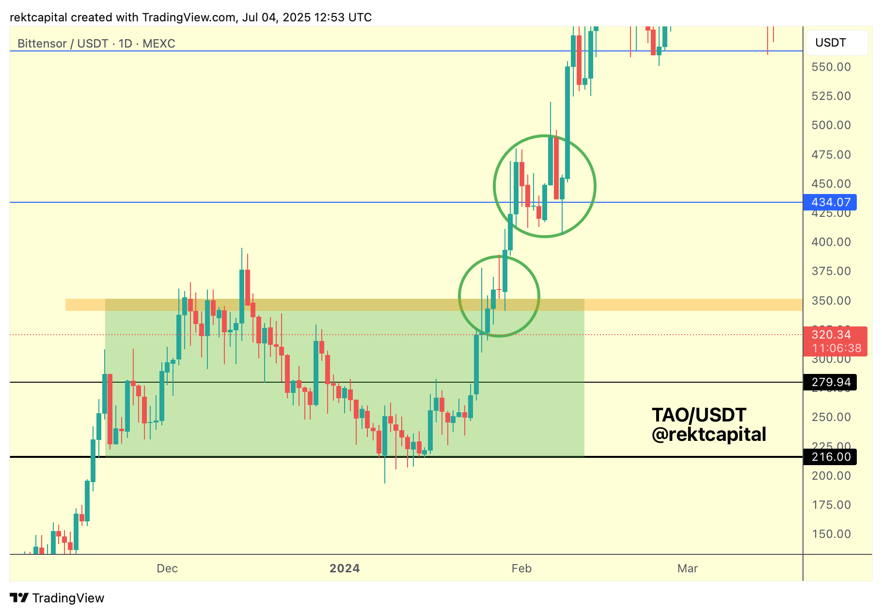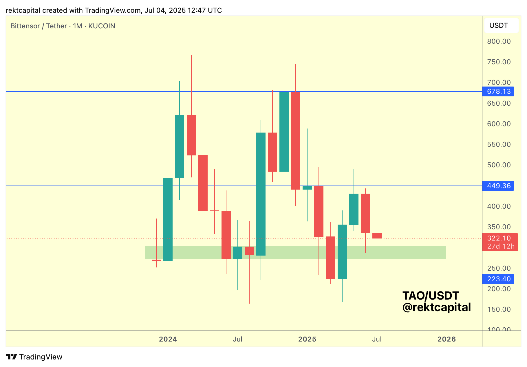 However, in the event that this confirmation is lacking, it's worth understanding TAO's positioning on the Weekly and then Monthly timeframe: