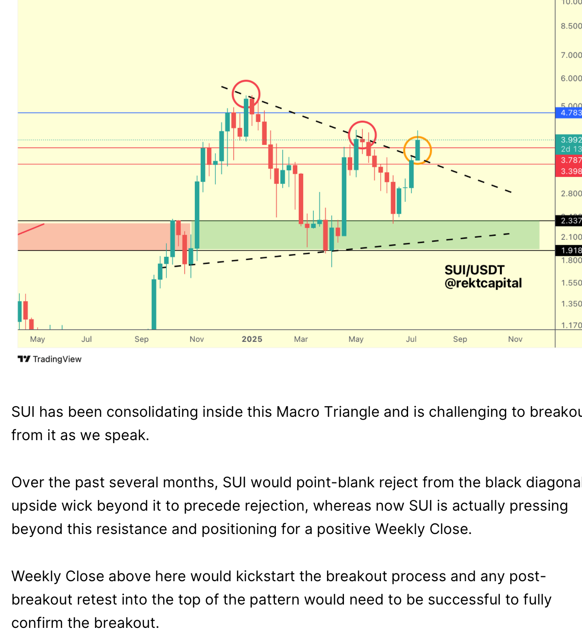 Generally, the goal for SUI will be to successfully retest this $3.51 level as support to officially turn it from old resistance into new support.