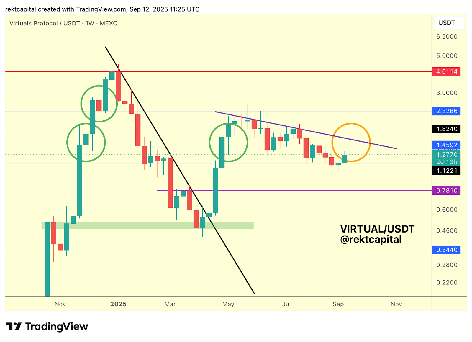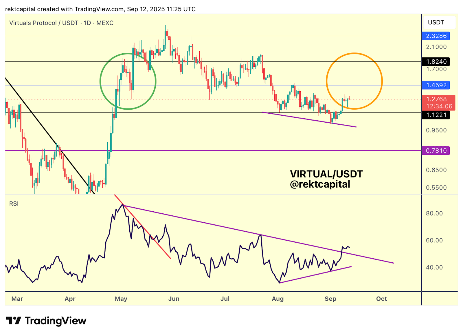 Reclaiming $1.45 as support while maintaining RSI strength would align both price action and momentum, setting the stage for a breakout attempt beyond the Weekly Downtrend.